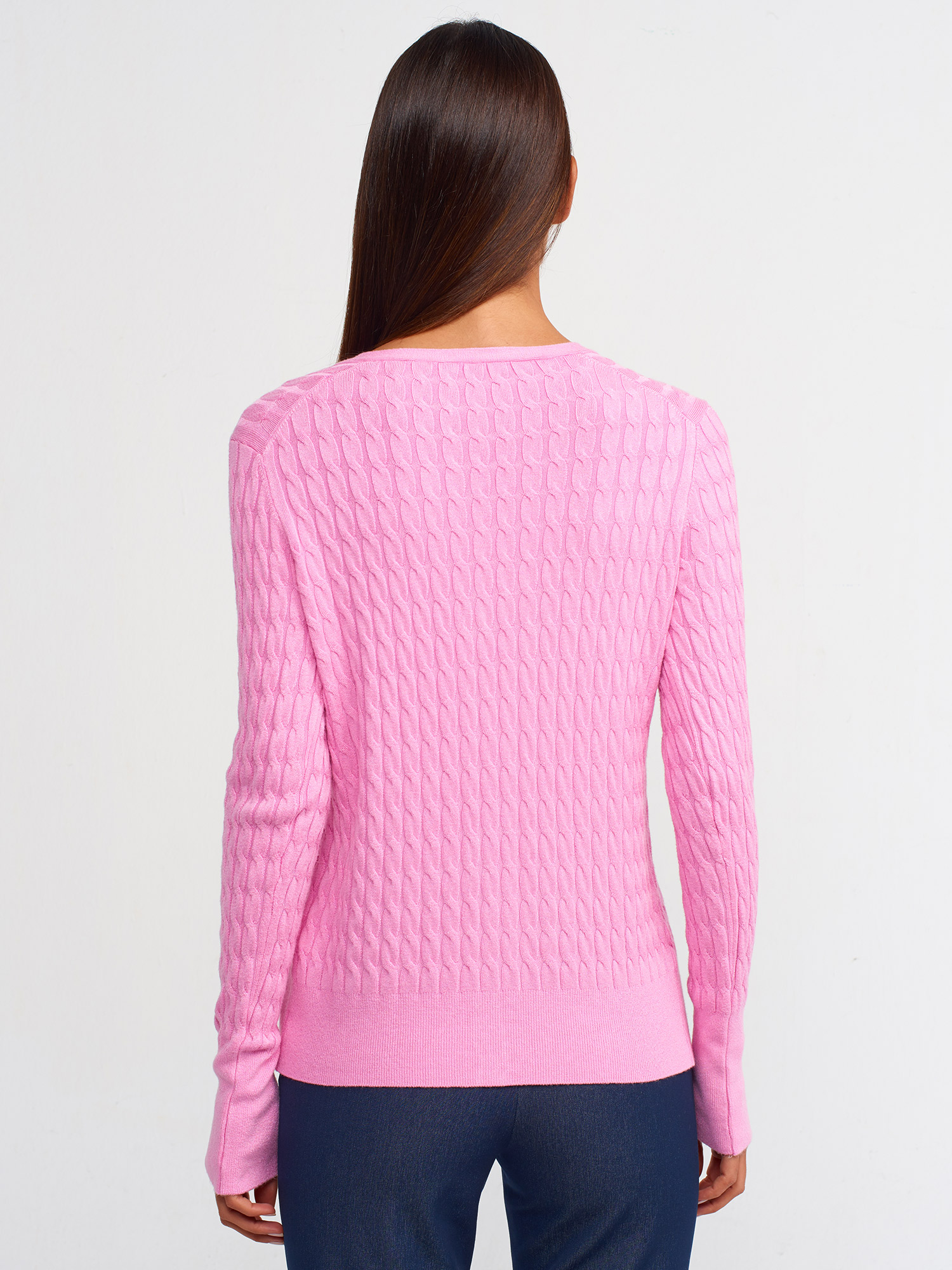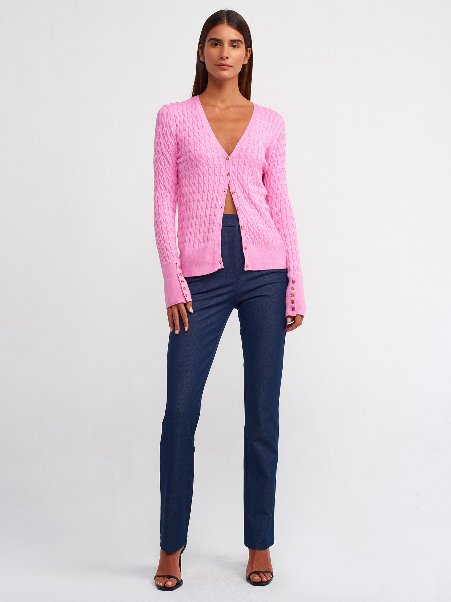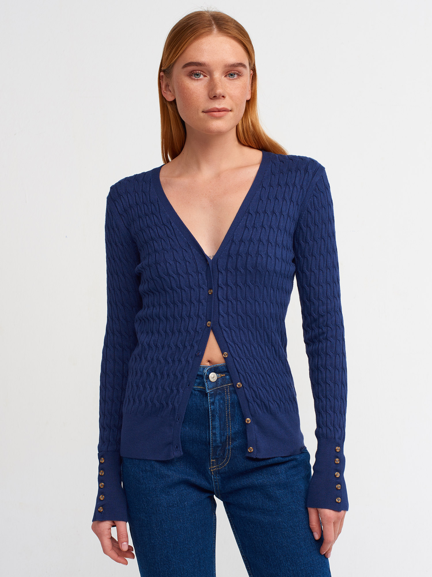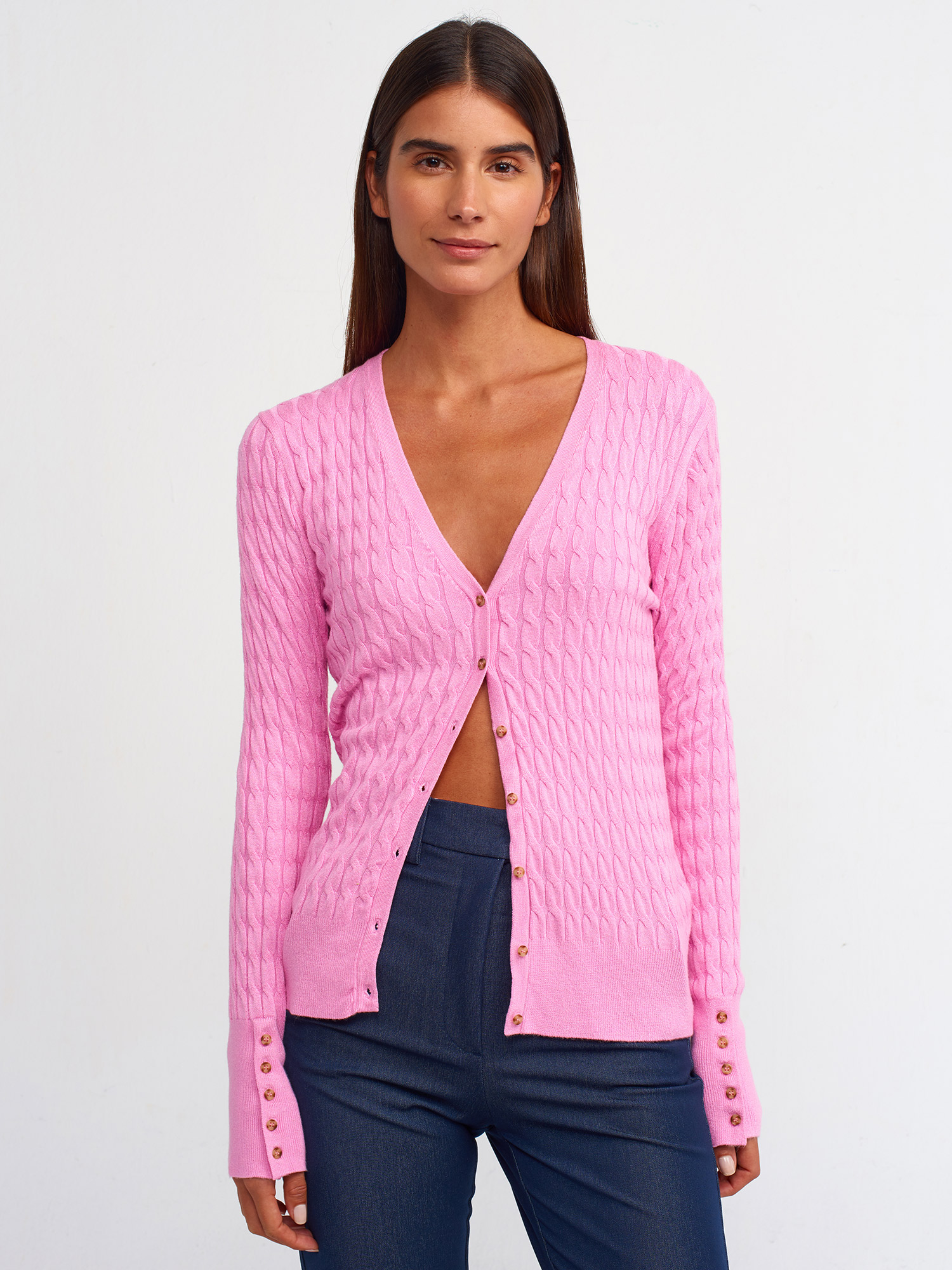 Dilvin Saç Örgülü Düğmeli Triko Hırka