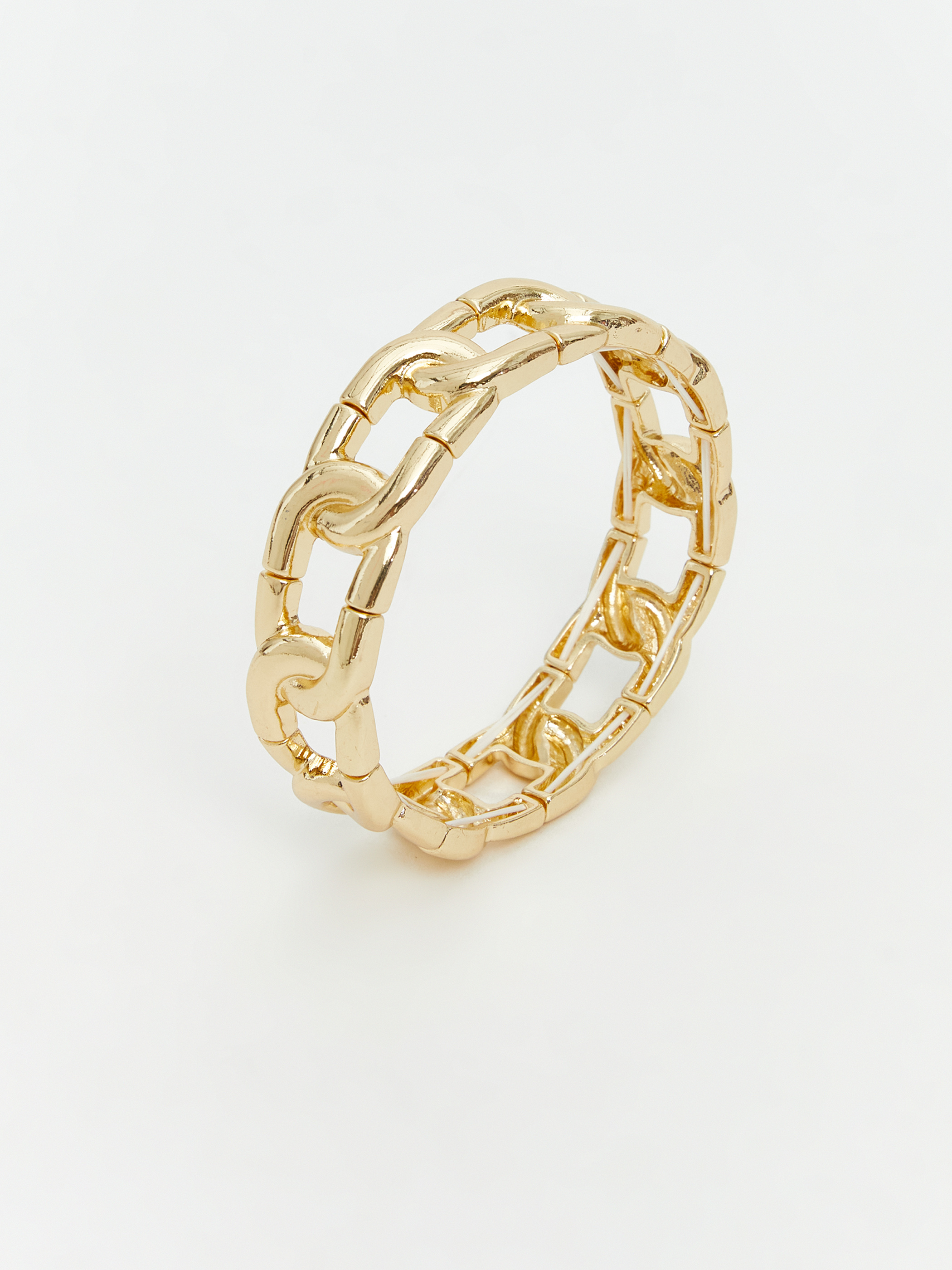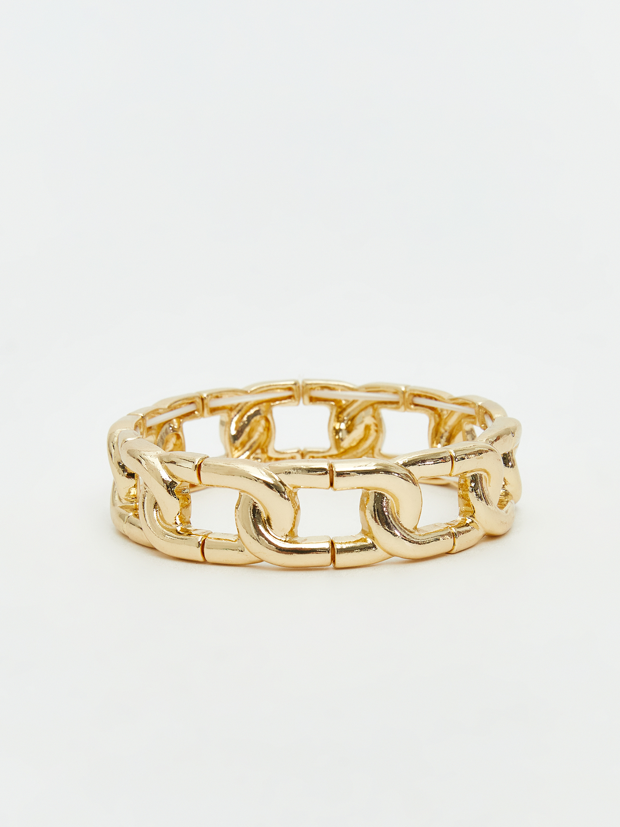 Kadın bileklik geniş ve birbirine geçmiş halkalardan oluşan zincir yapısına sahiptir.
