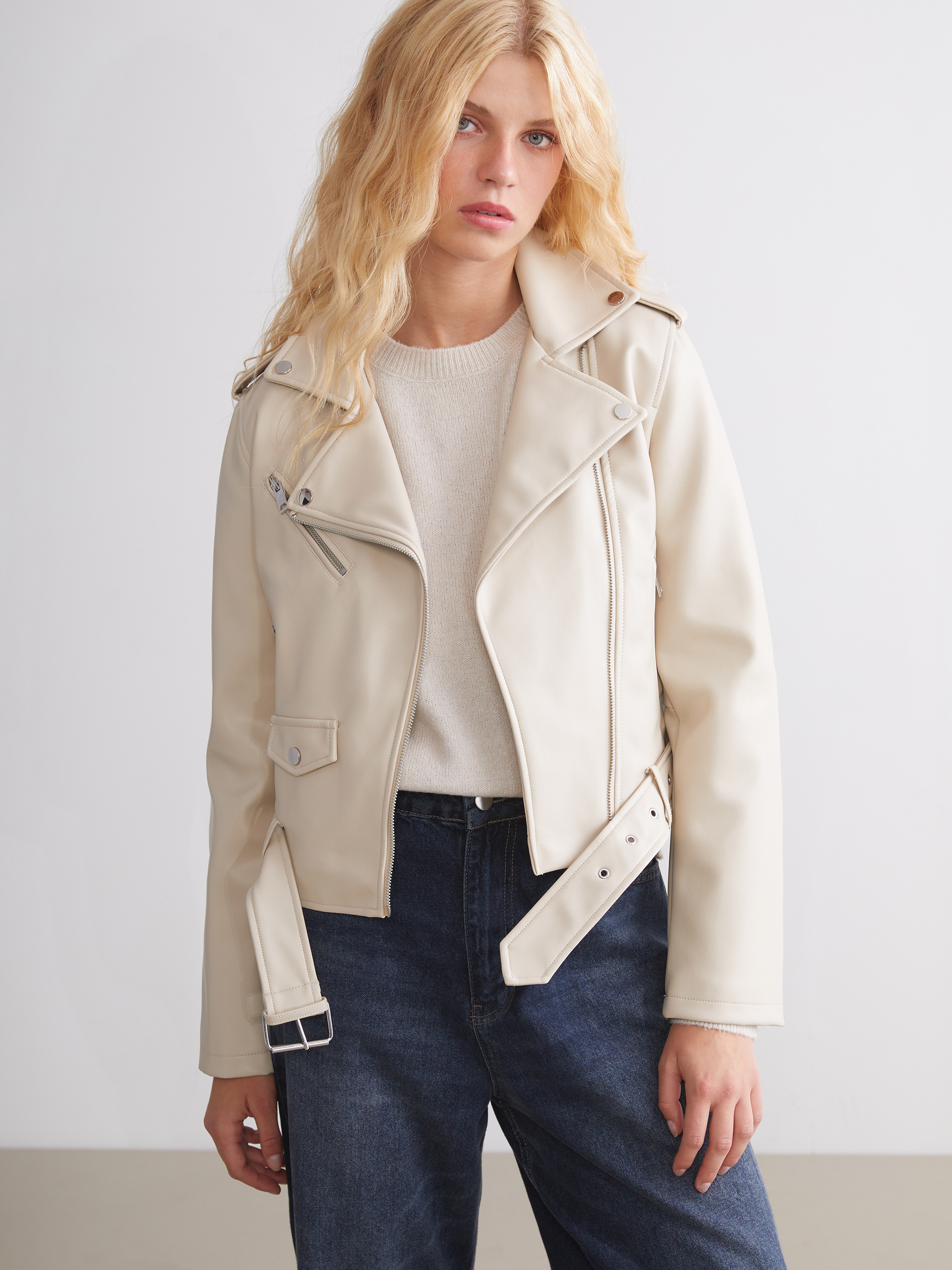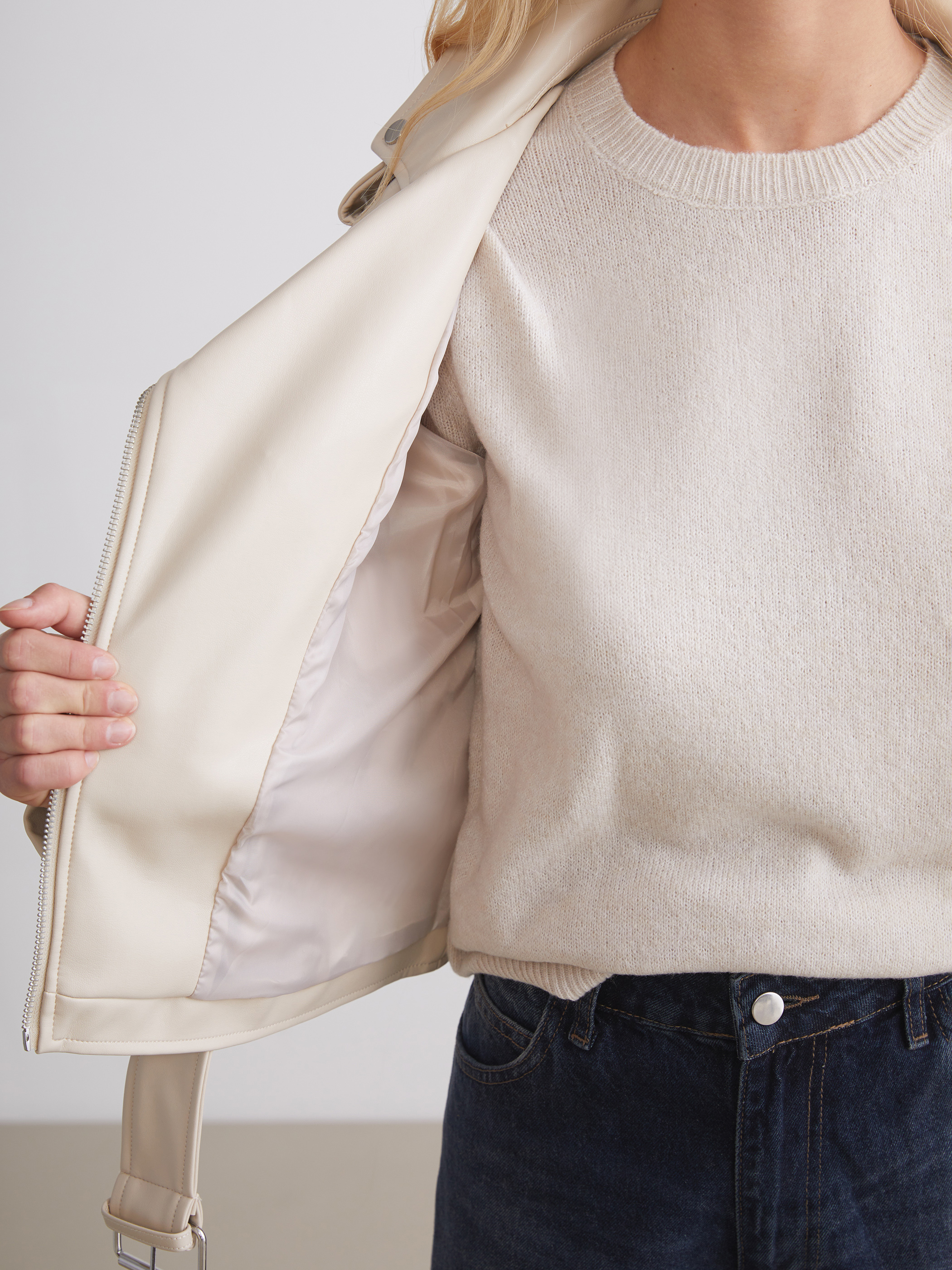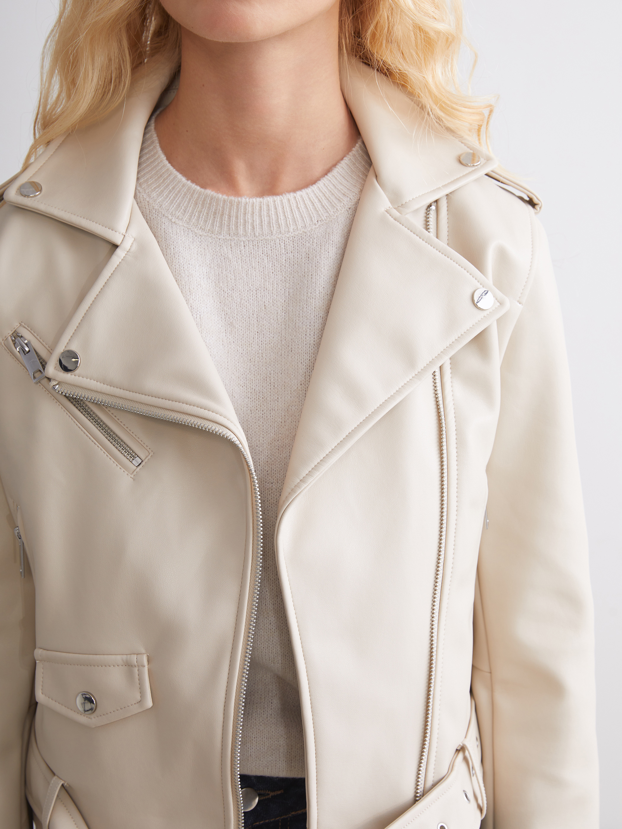 Deri Görünümlü Ceket EKRU