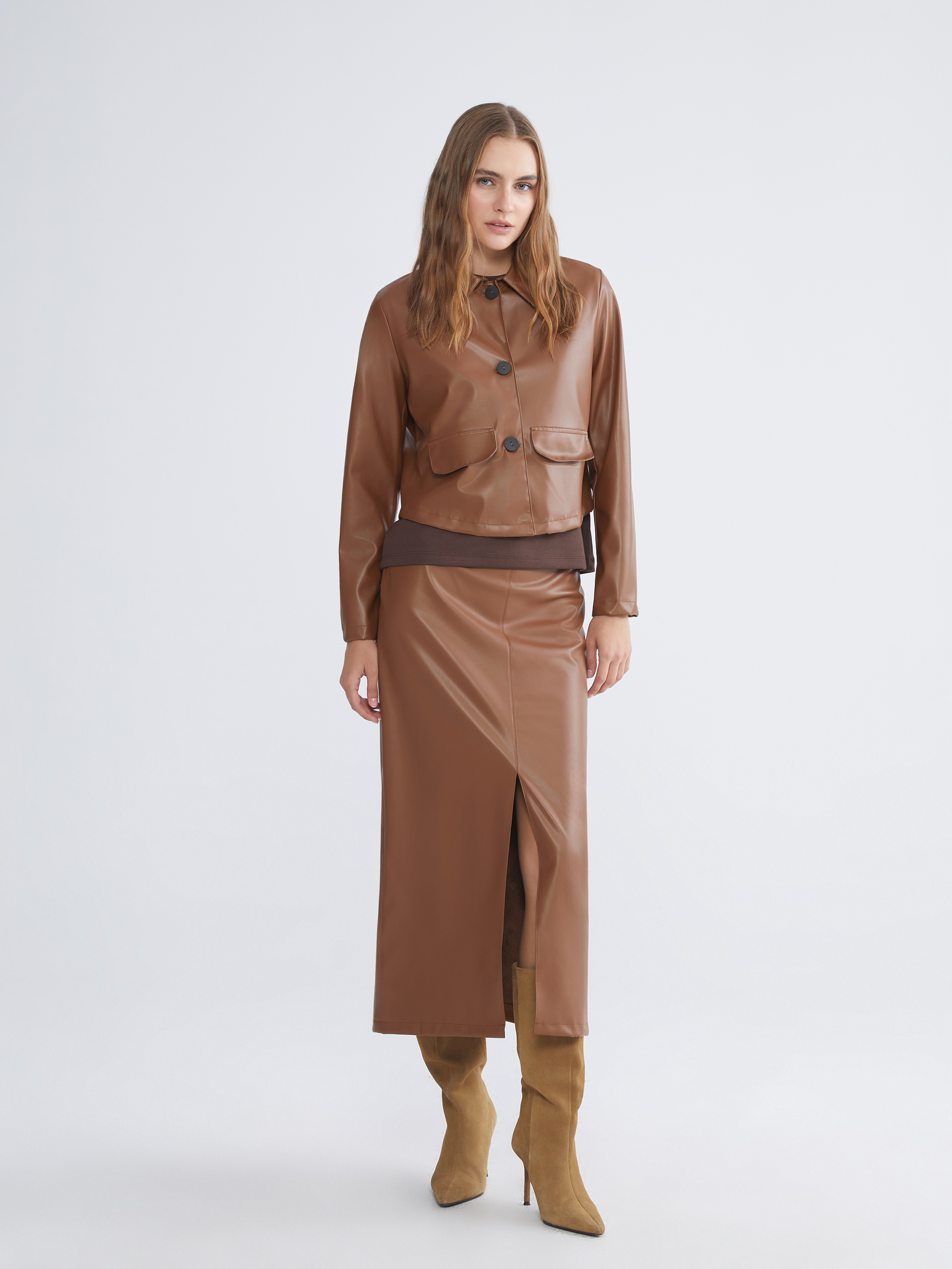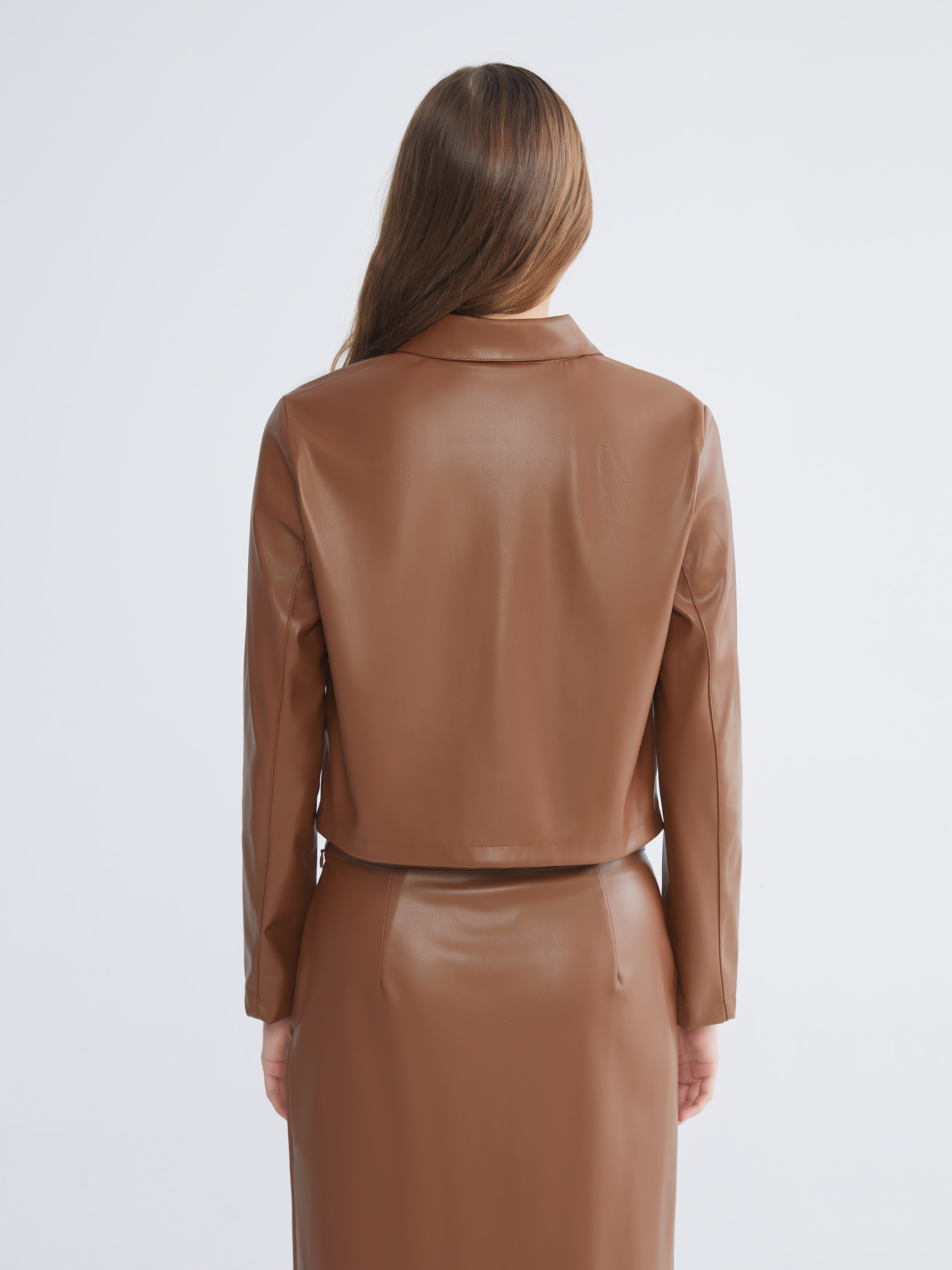 Deri Görünümlü Ceket KAHVERENGİ