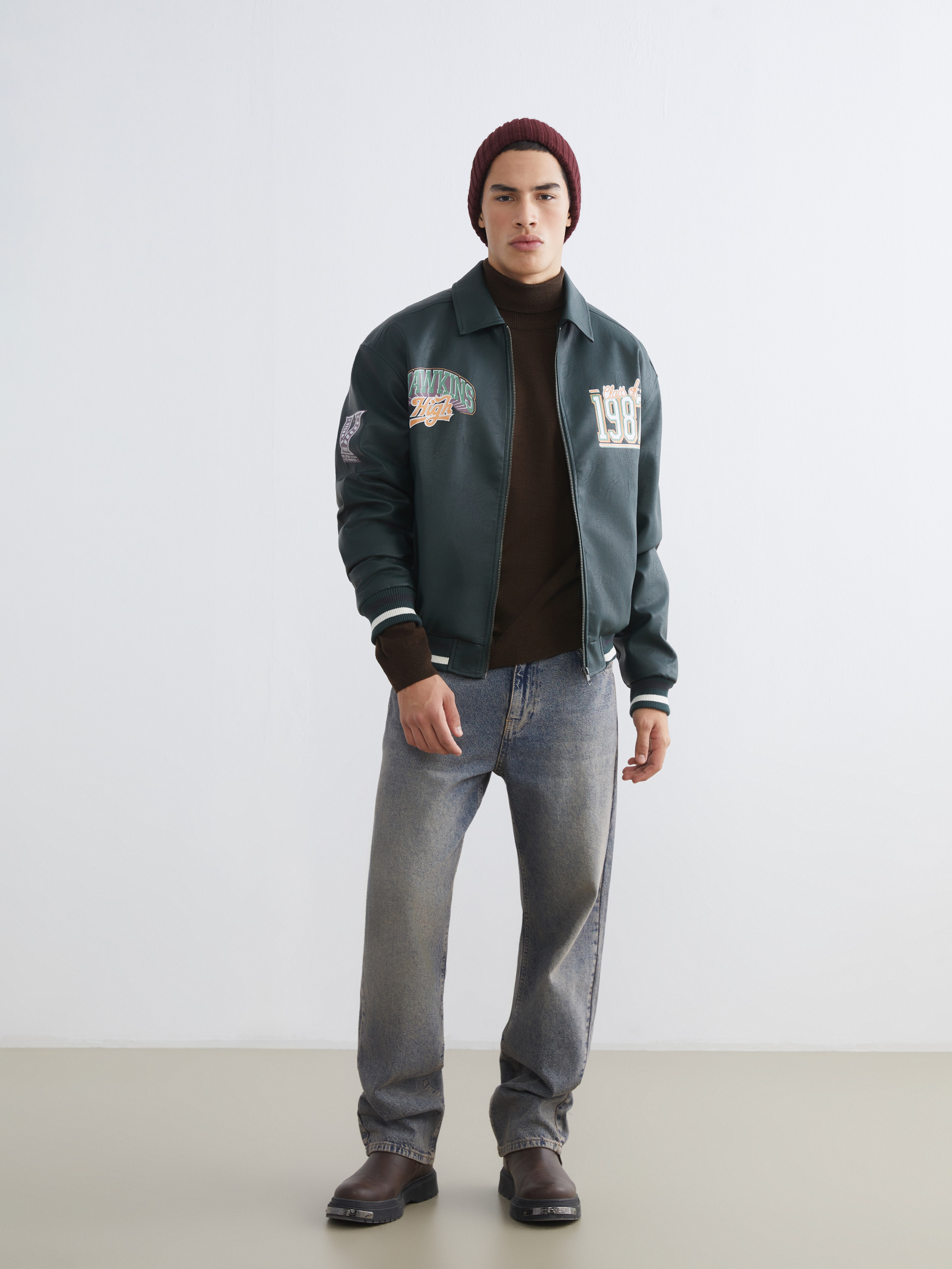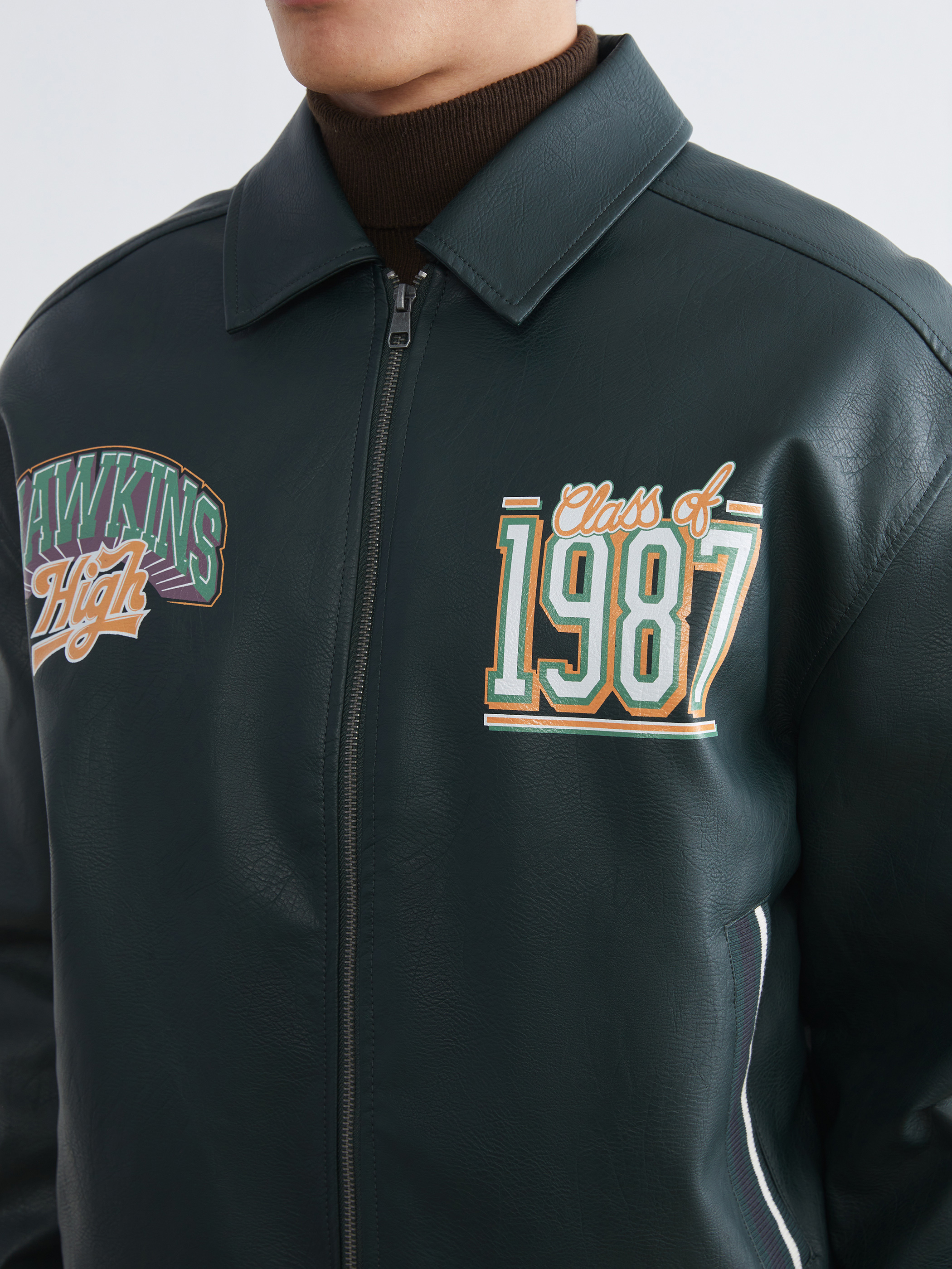 Deri Görünümlü Ceket KOYU YEŞİL
