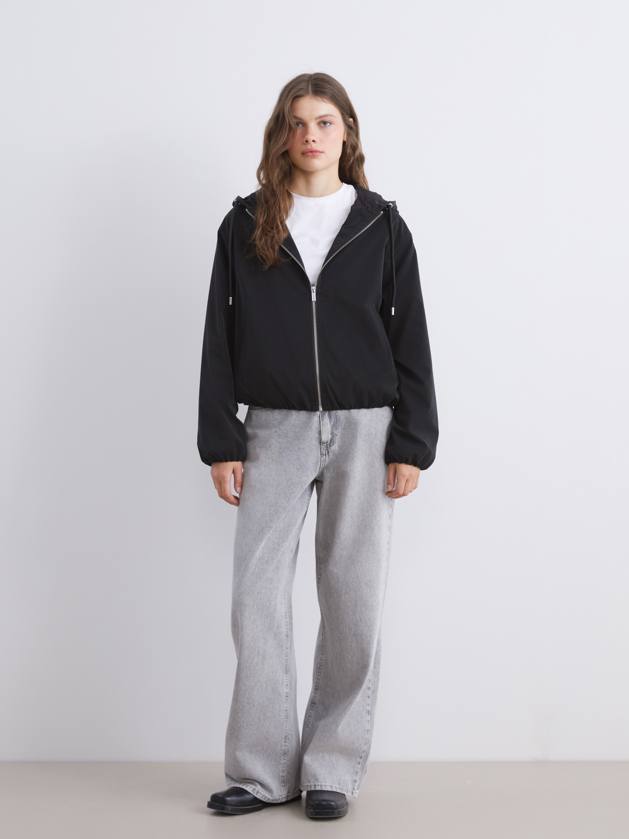 Deri Görünümlü Mont YENİ SİYAH