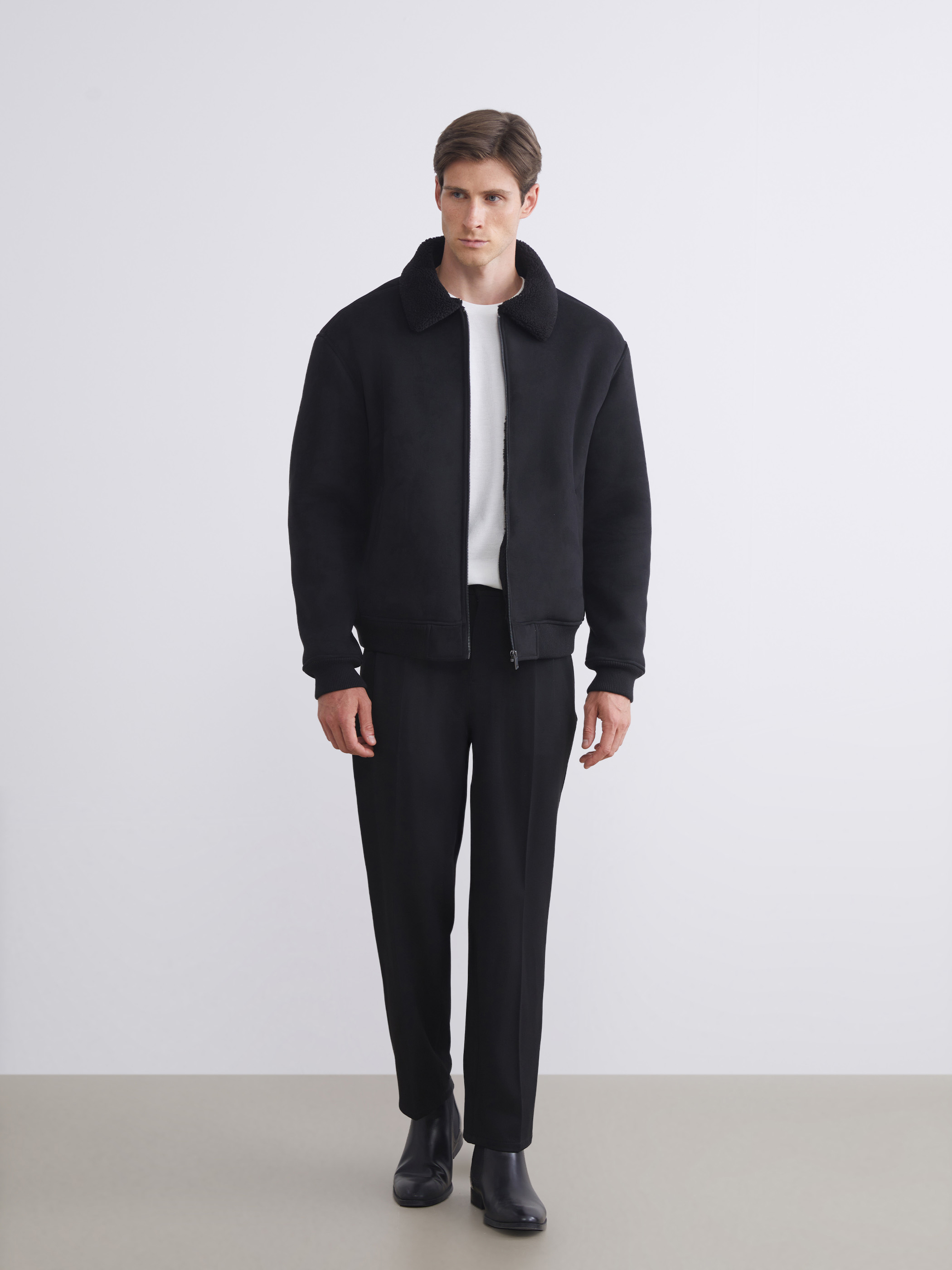 Deri Görünümlü Mont YENİ SİYAH