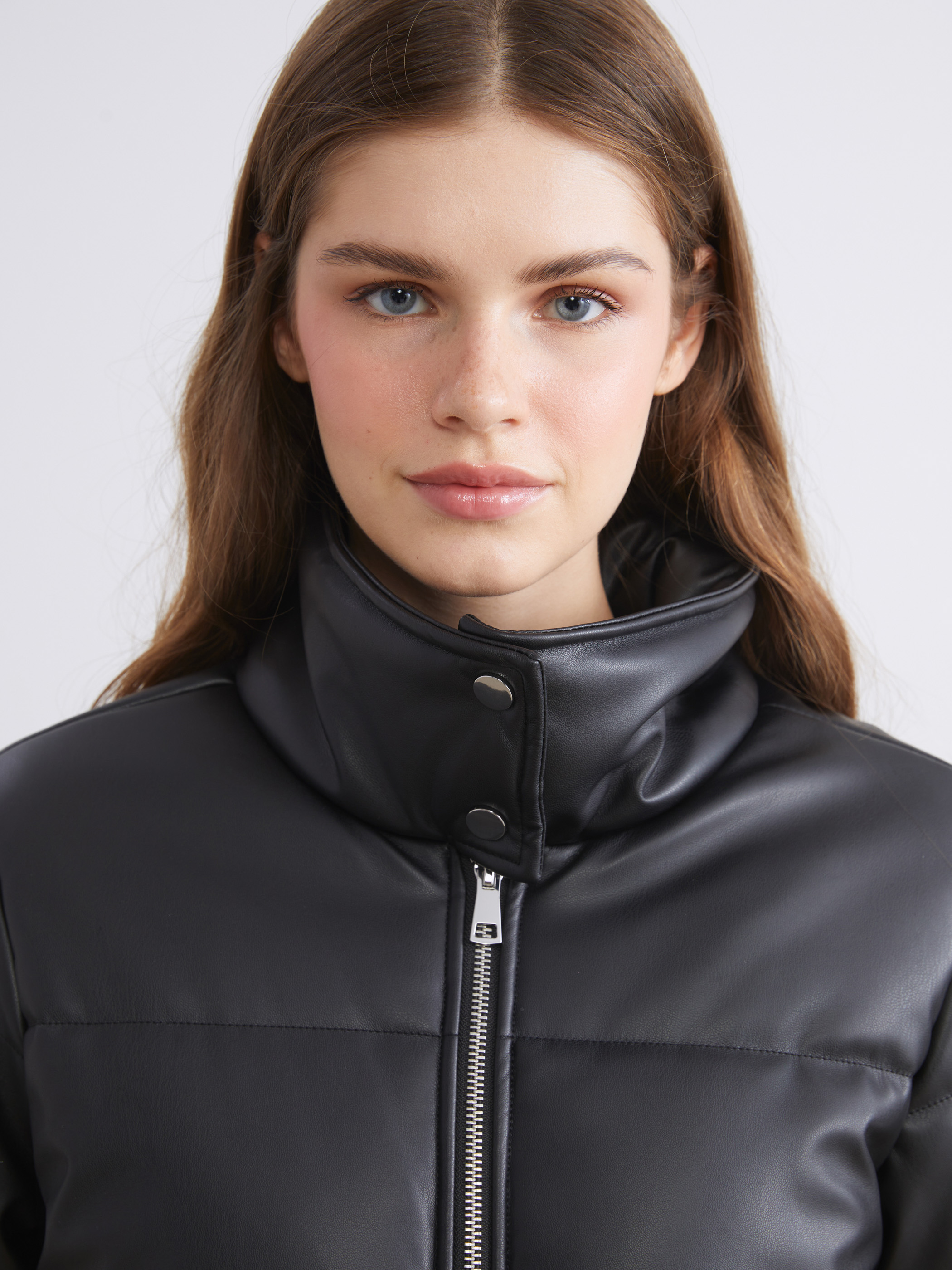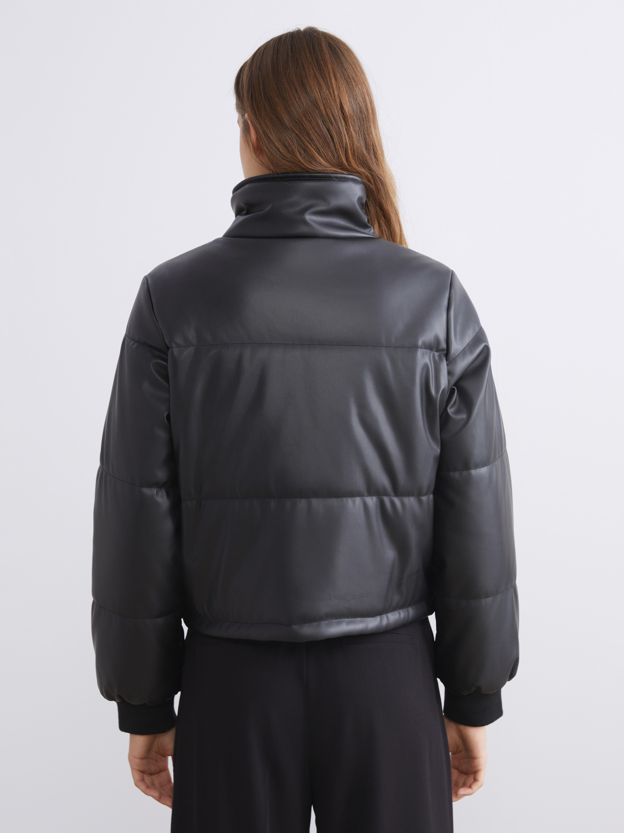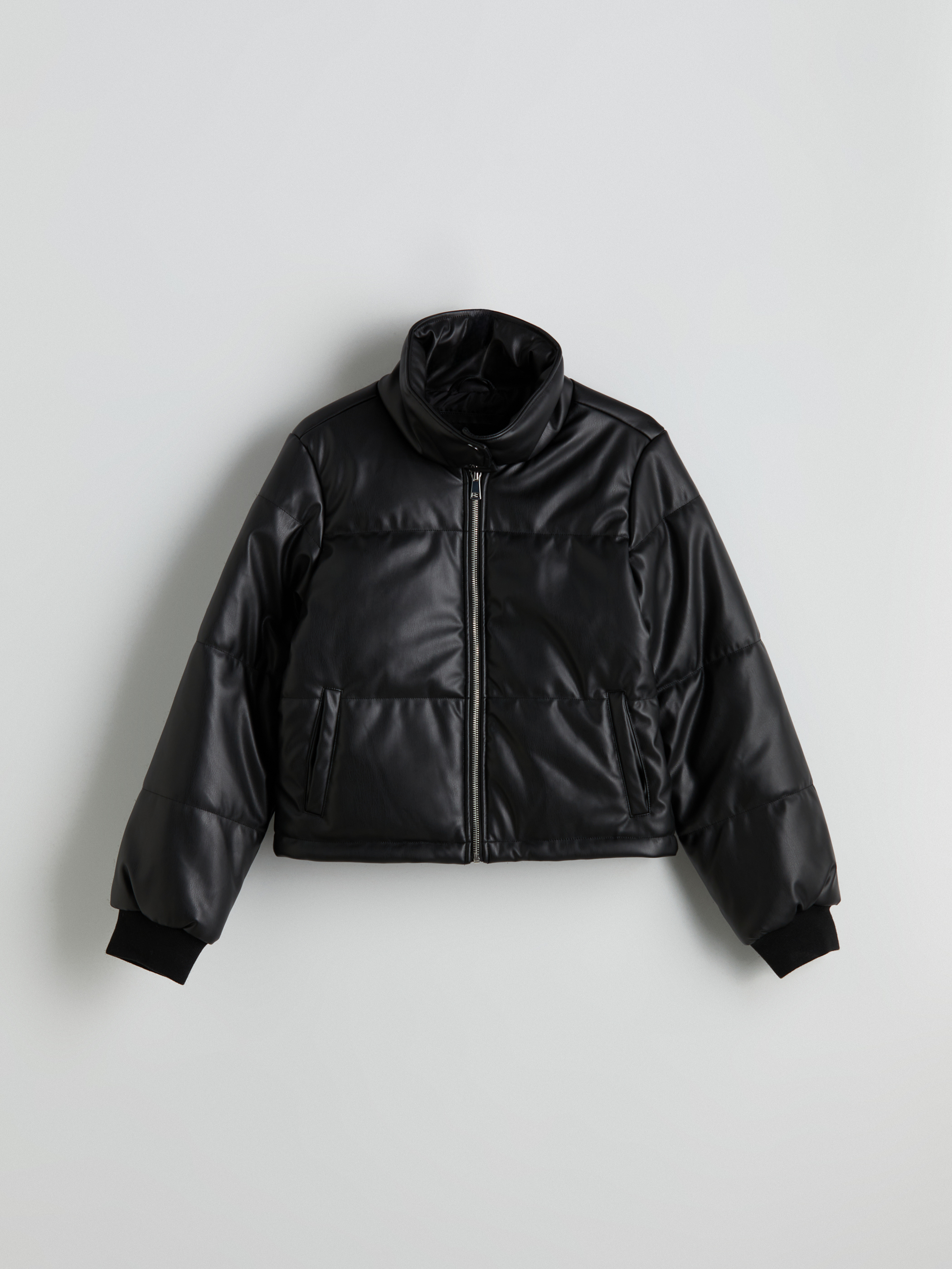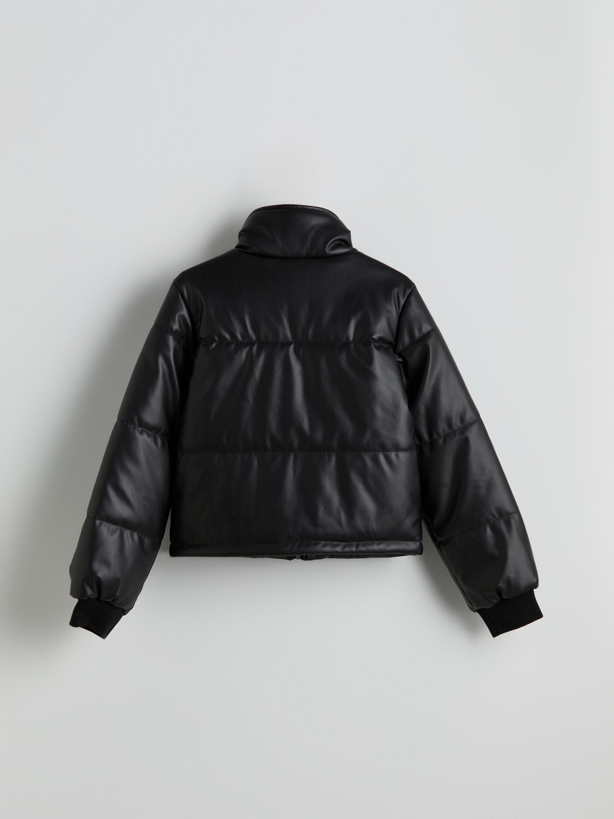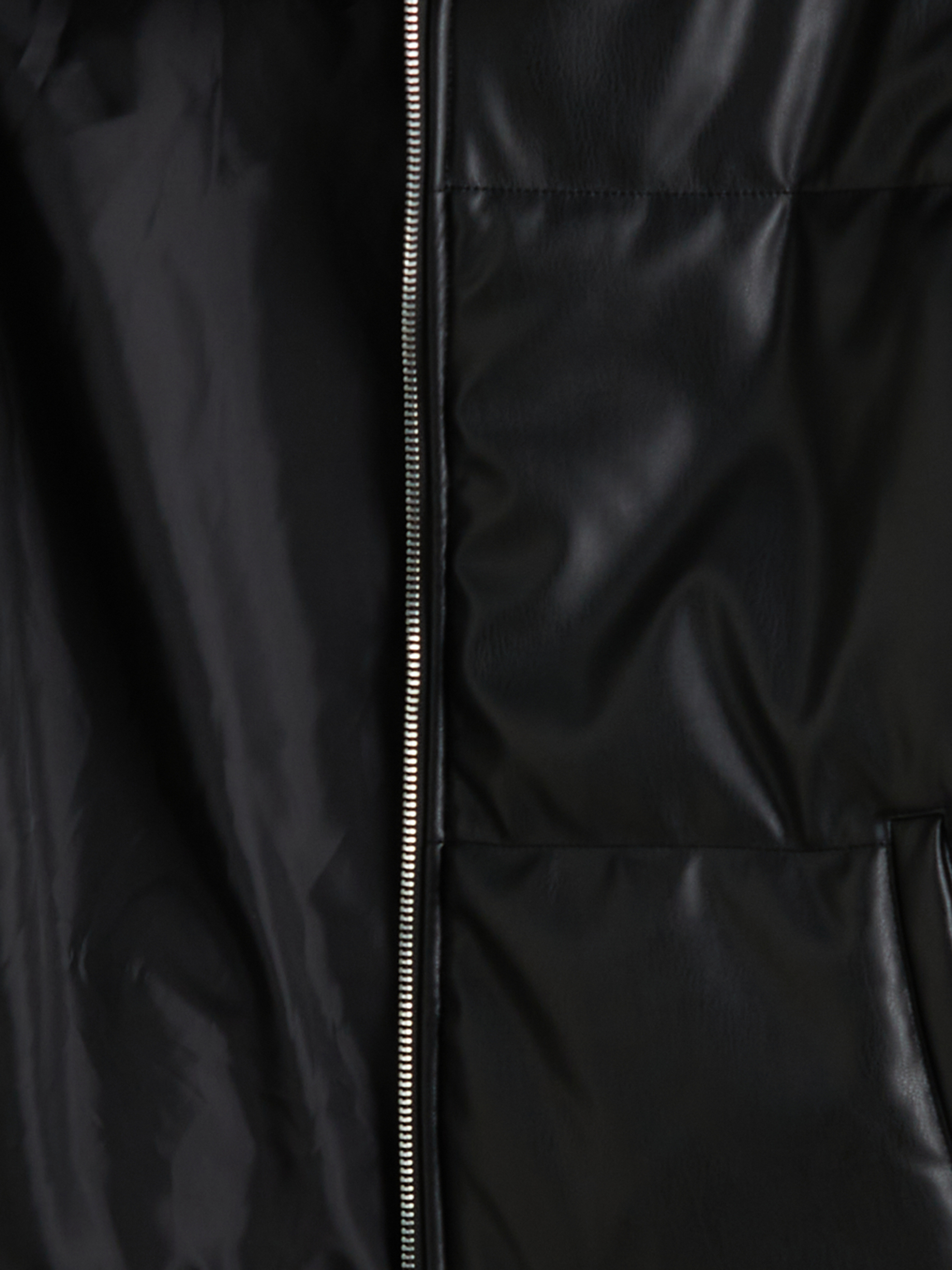 Deri Görünümlü Mont YENİ SİYAH