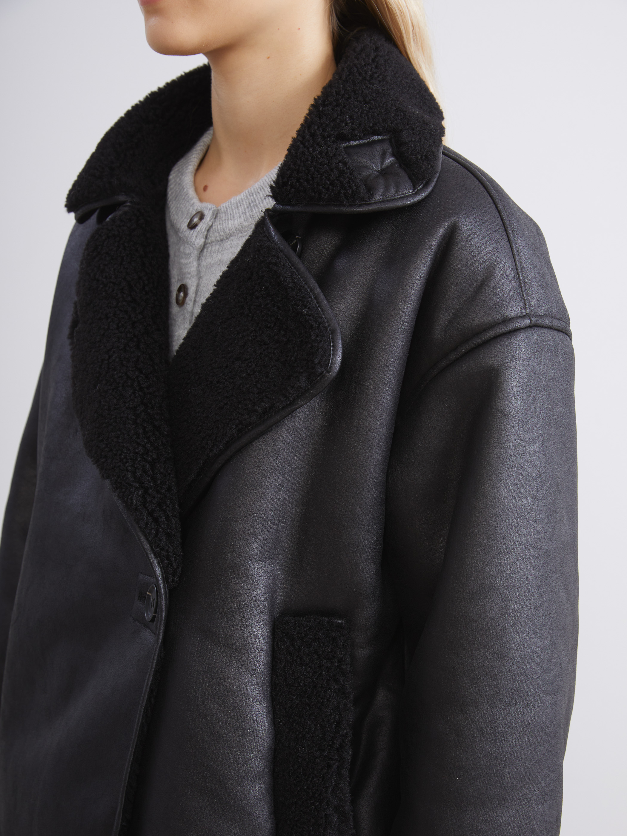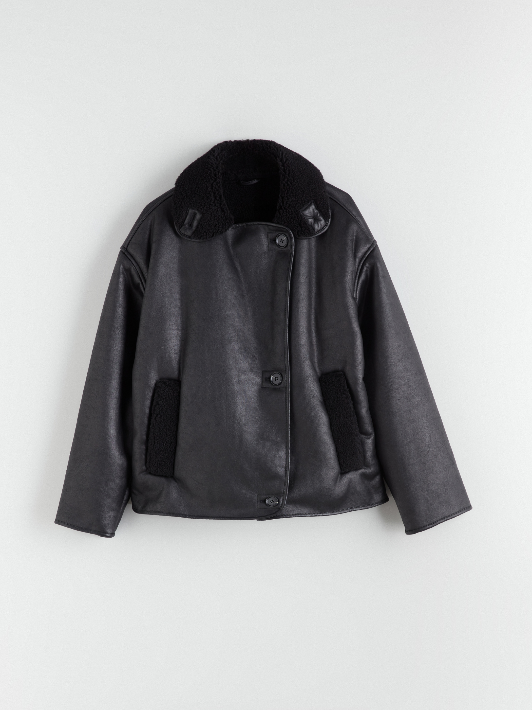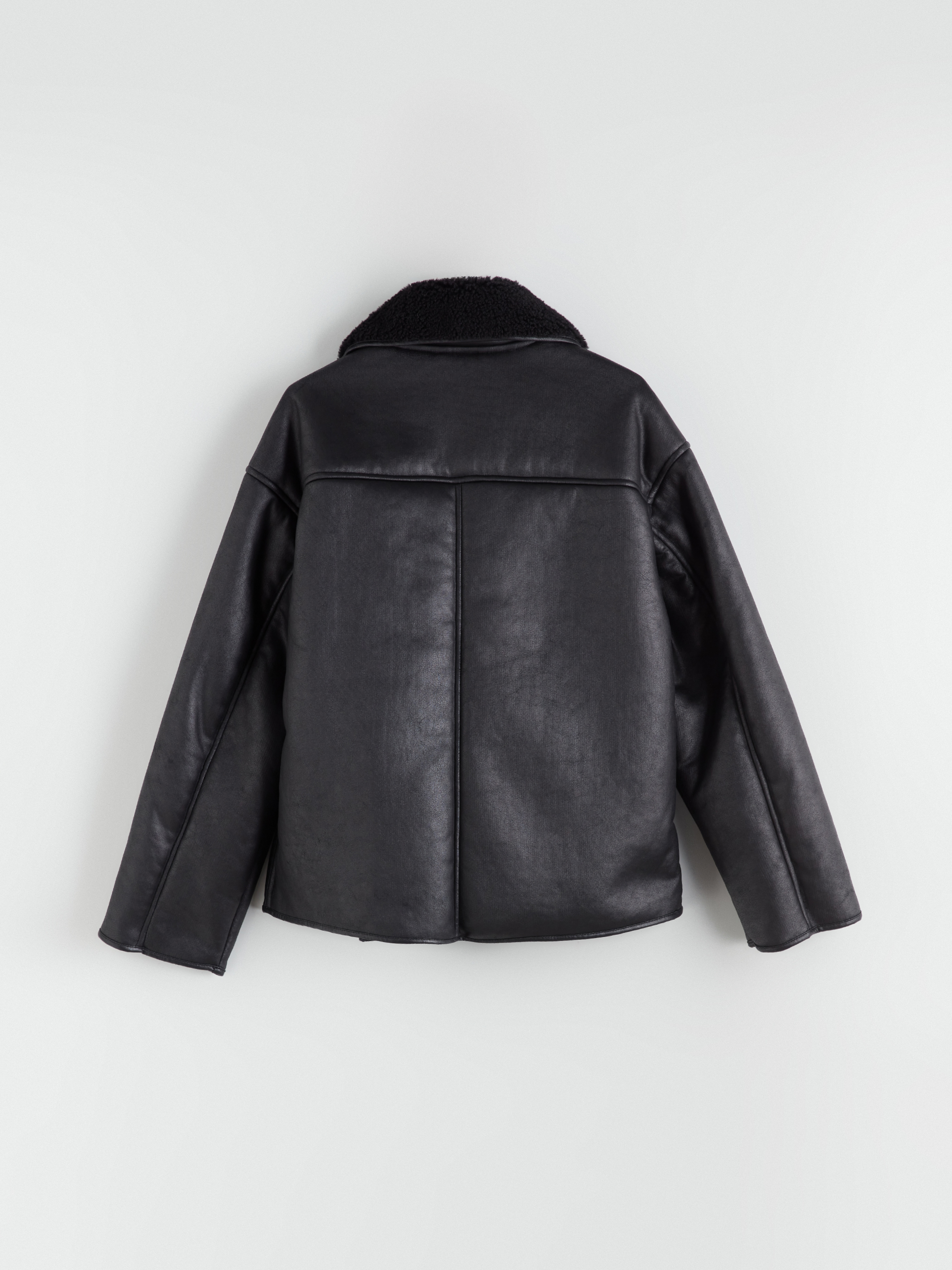 Deri Görünümlü Mont YENİ SİYAH