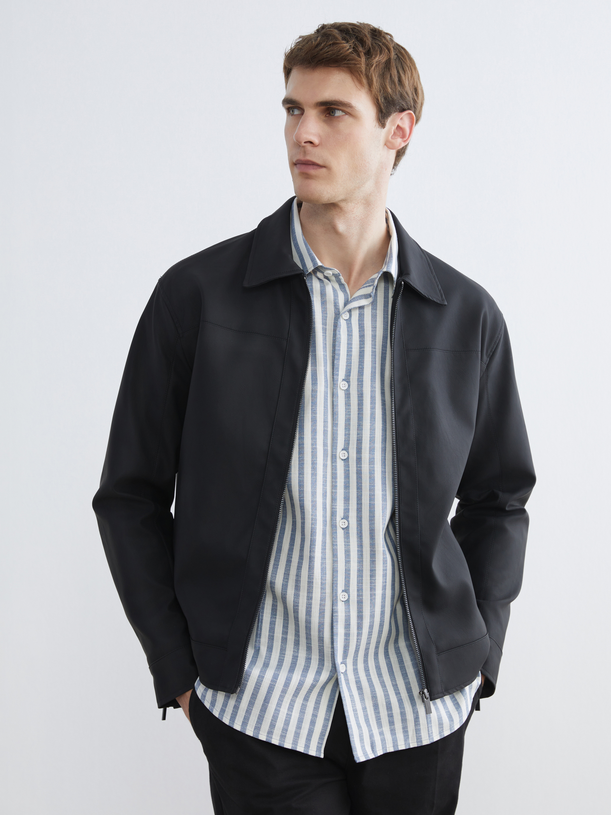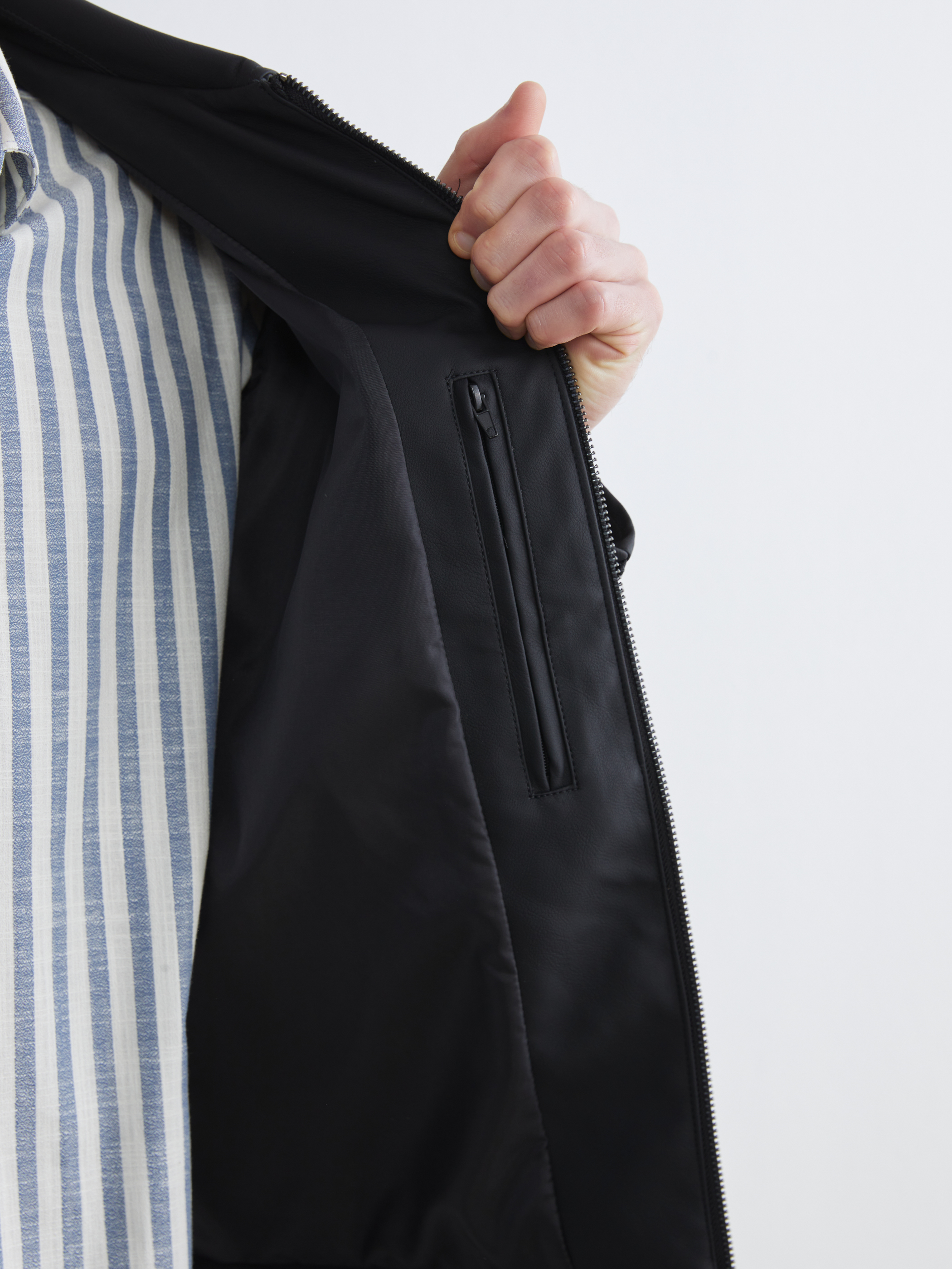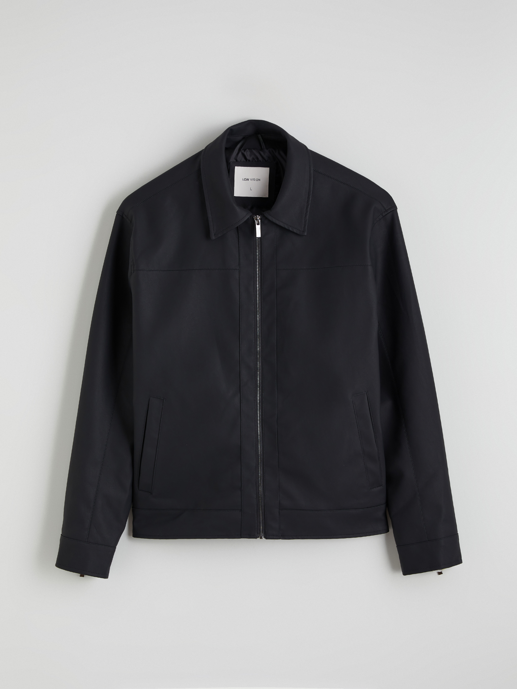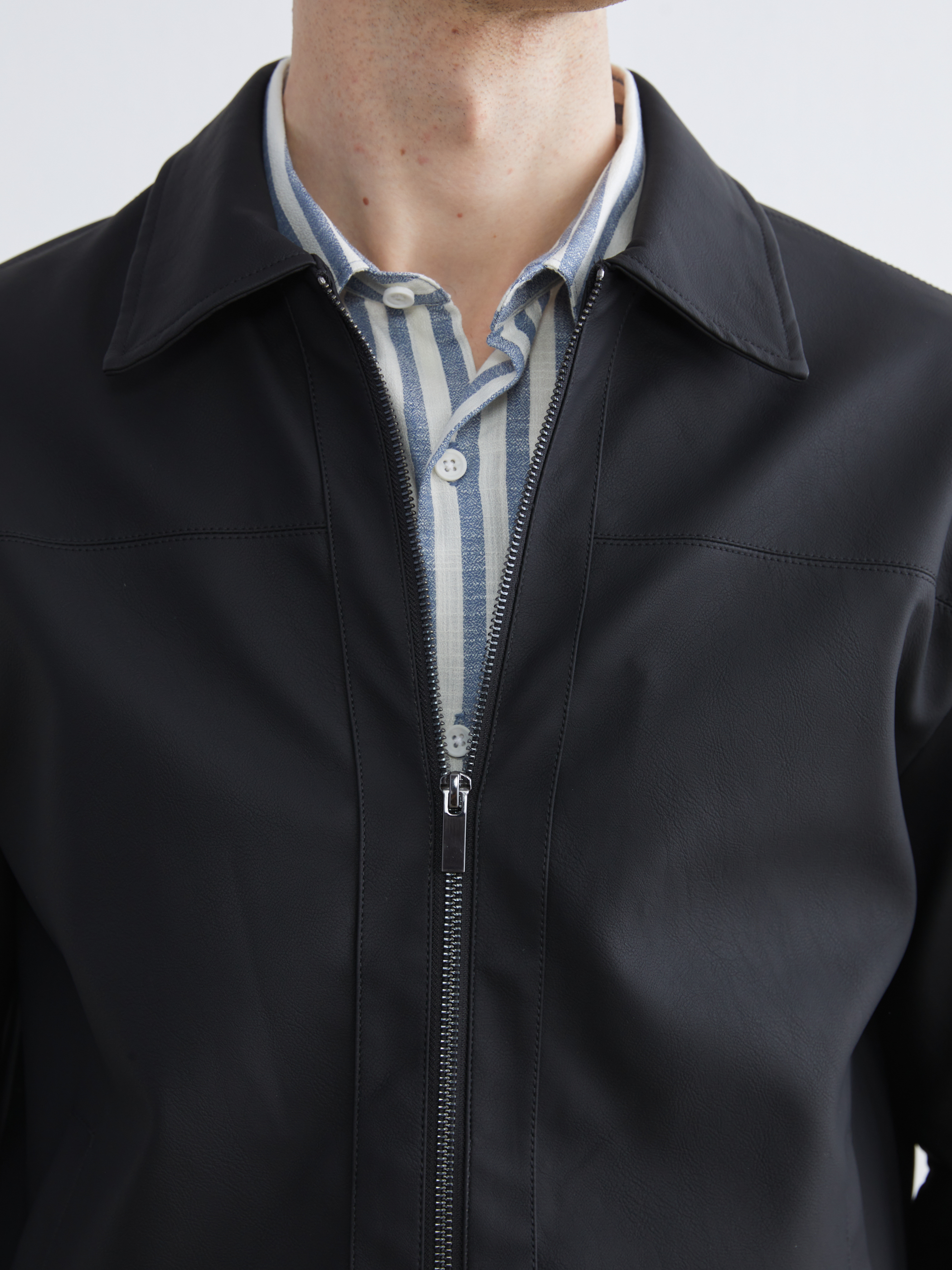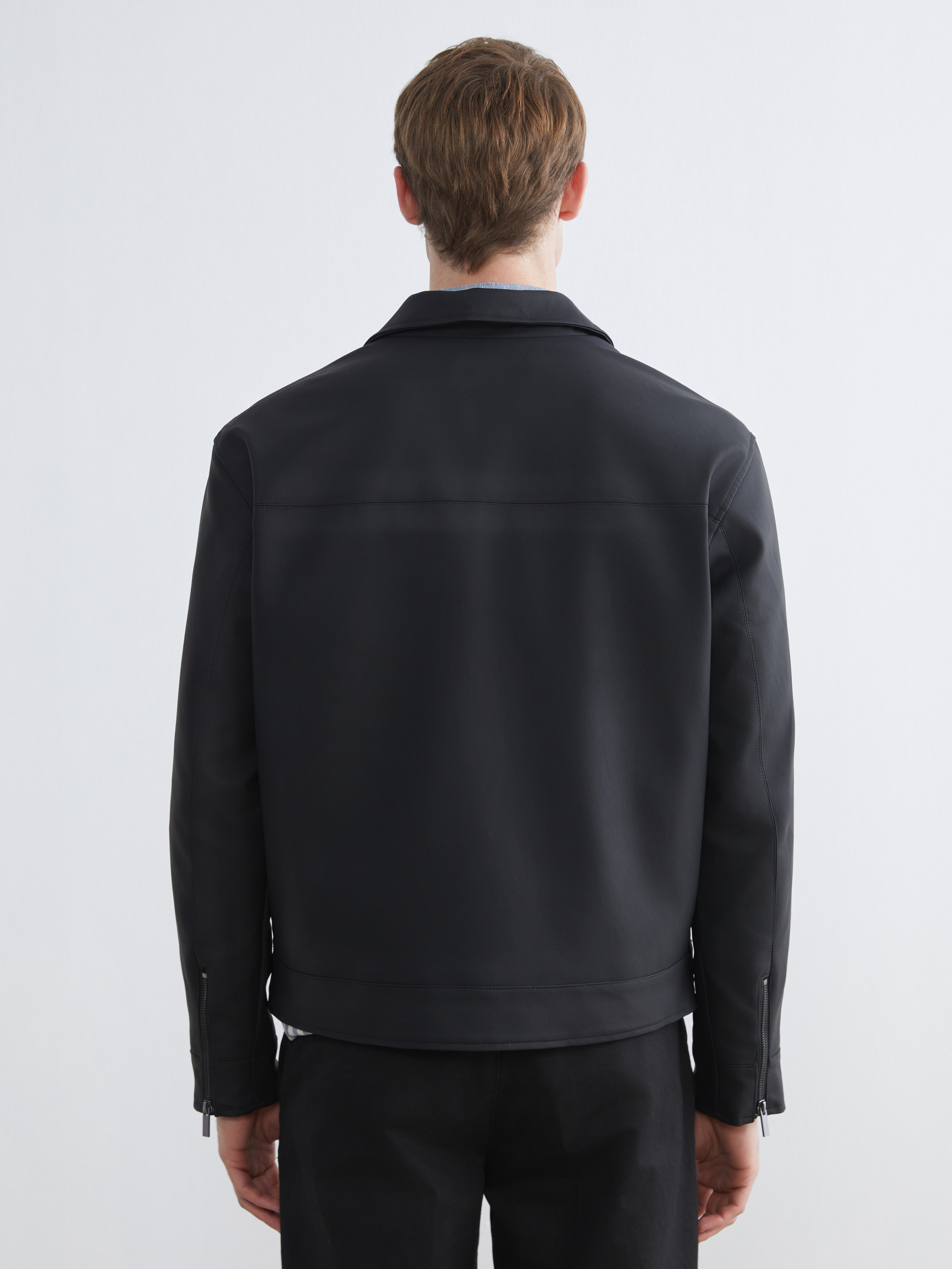 Deri Görünümlü Mont YENİ SİYAH