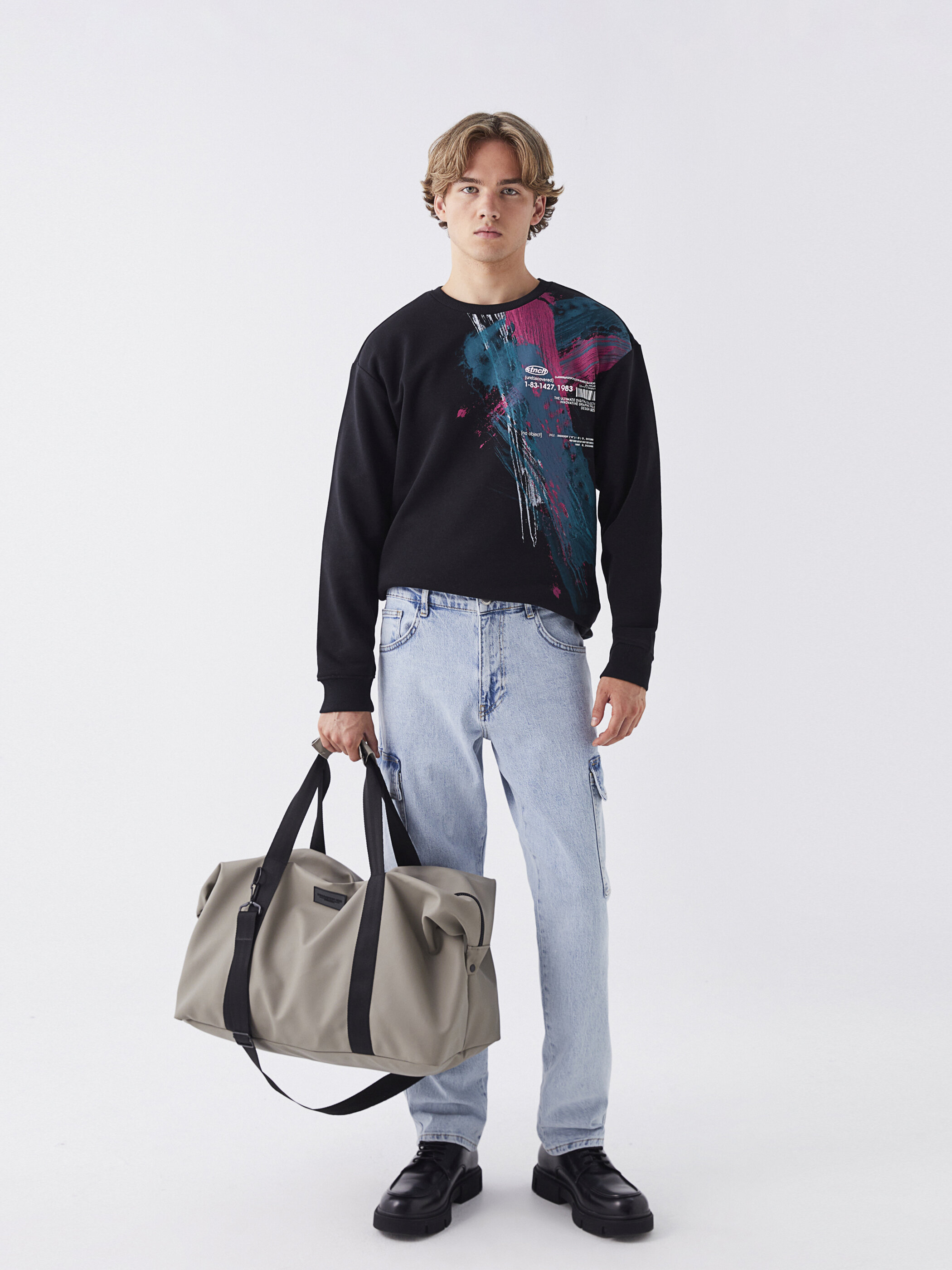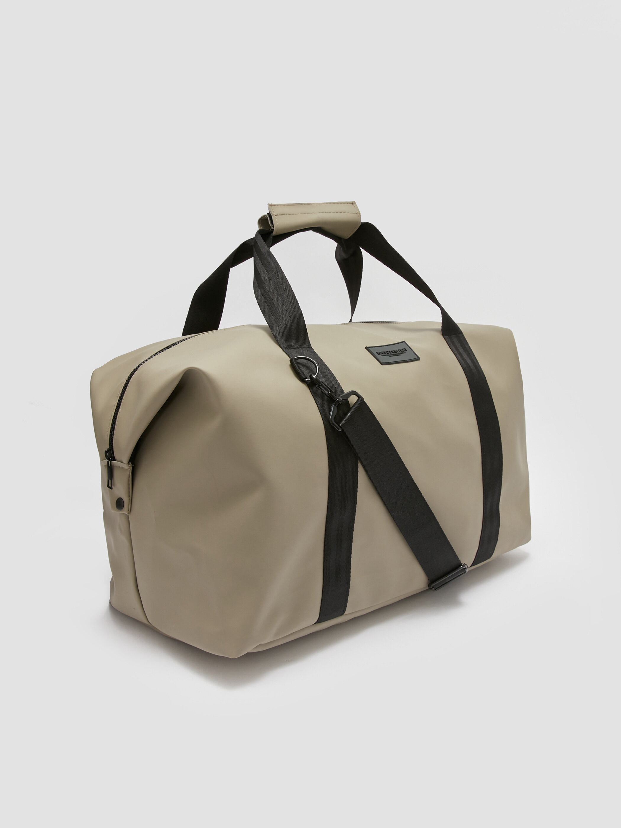 Etiket Baskılı Erkek Spor Çantası KOYU BEJ
