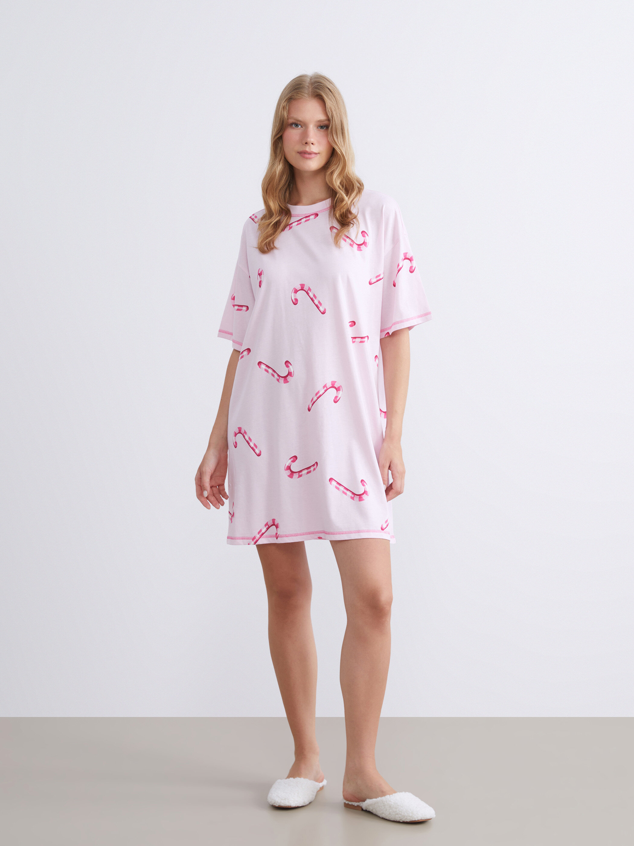 Gecelik PEMBE BASKILI