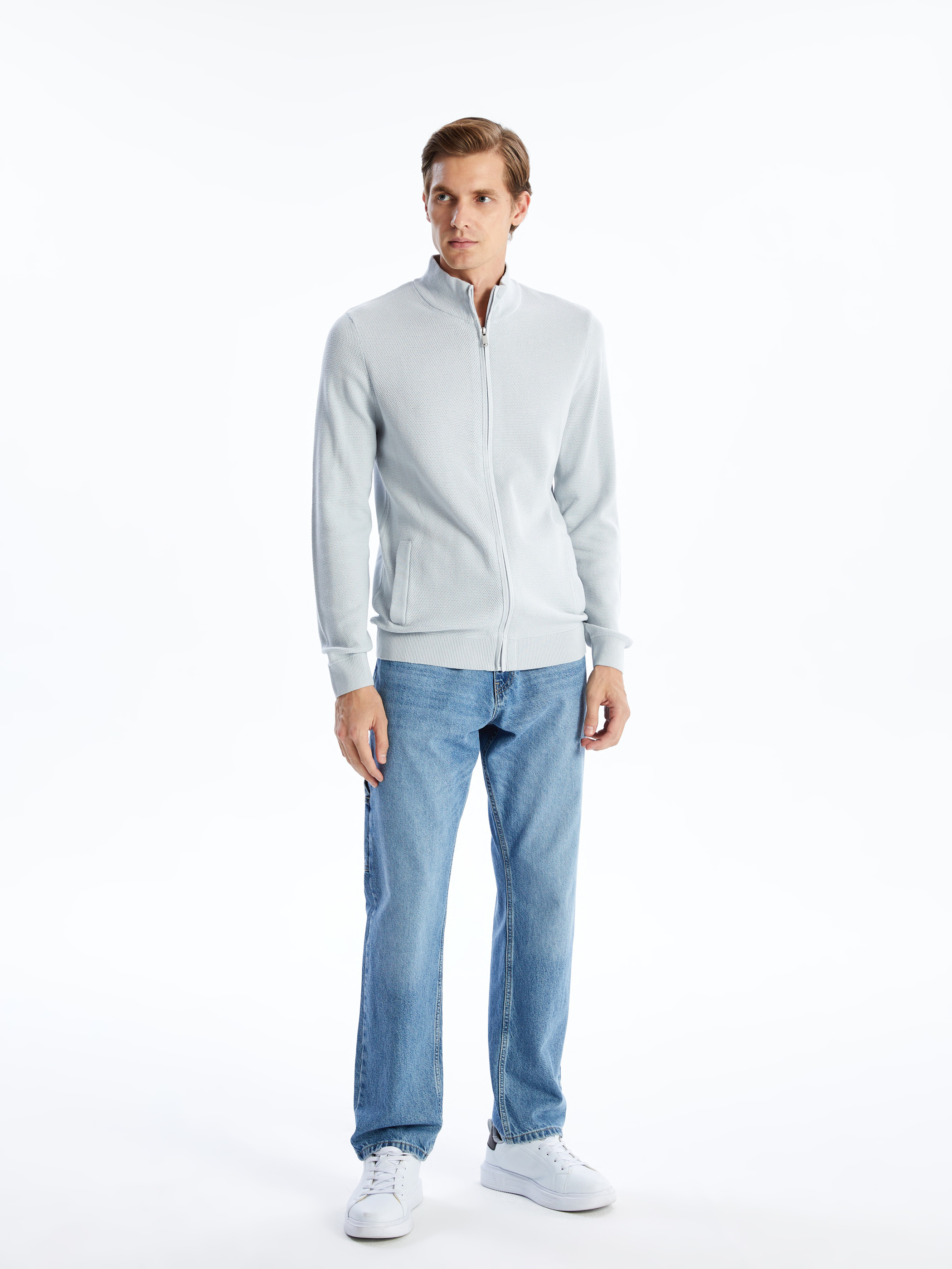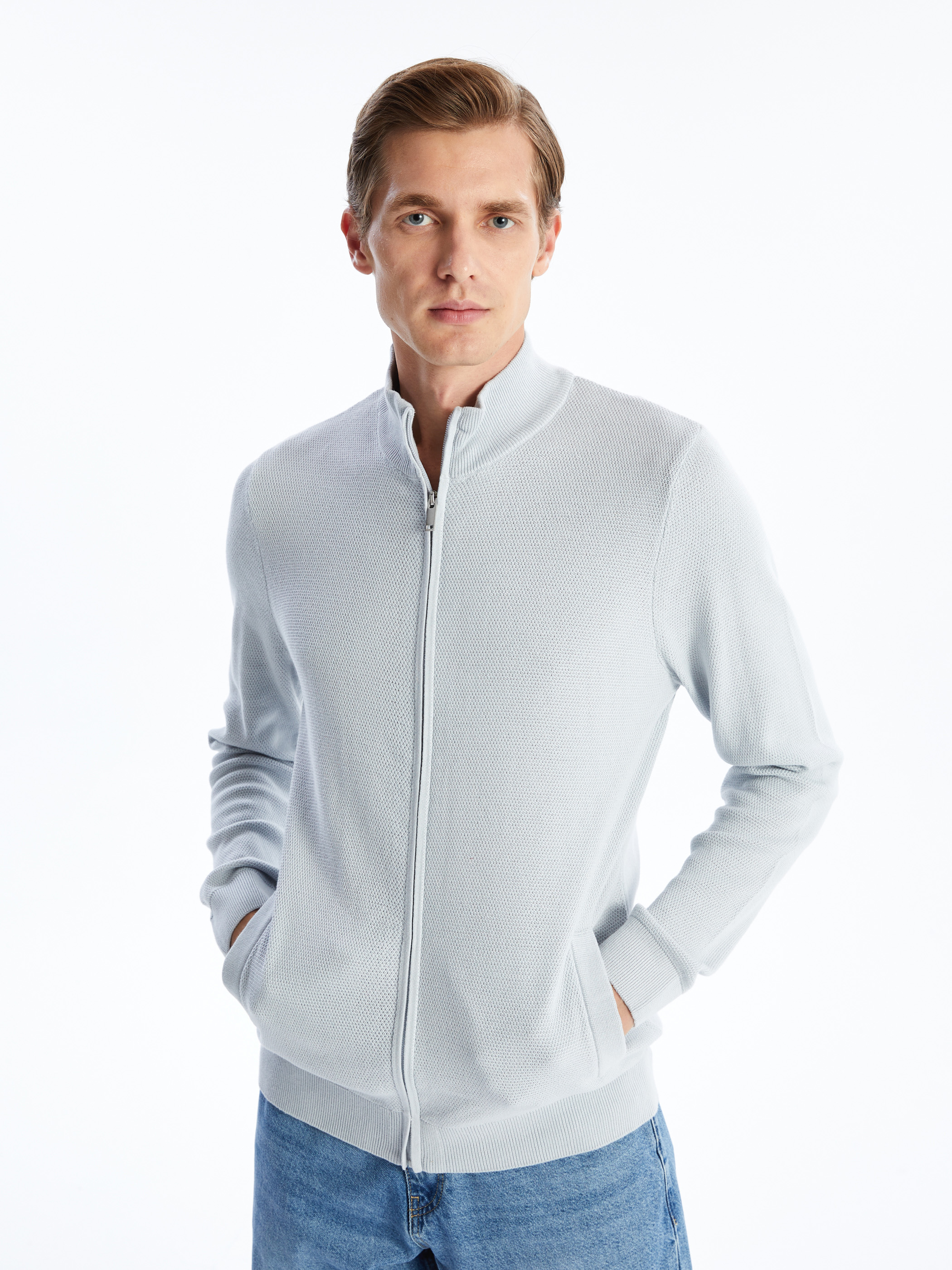 Sıcak ve yumuşak triko kumaştan üretilmiştir, böylece rahat bir his sağlar. Dik yaka tasarımı, şık ve klasik bir görünüm sunarken fermuar kapamalı detayı ise kullanım kolaylığı sağlar.