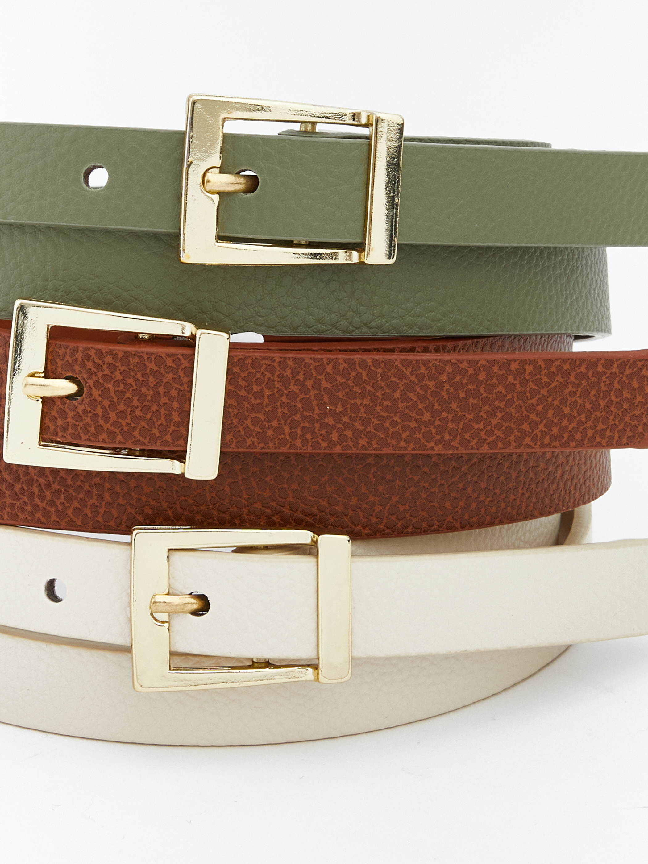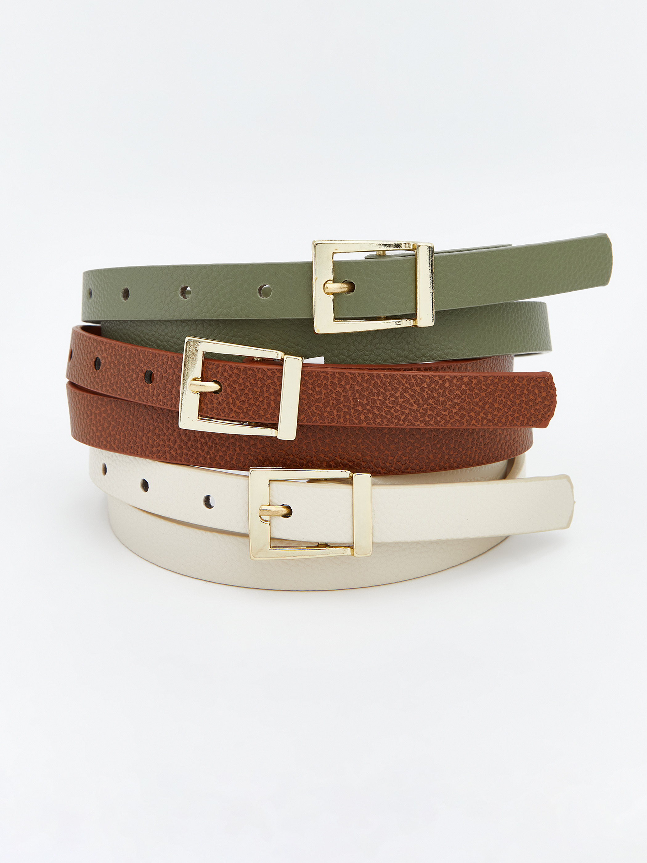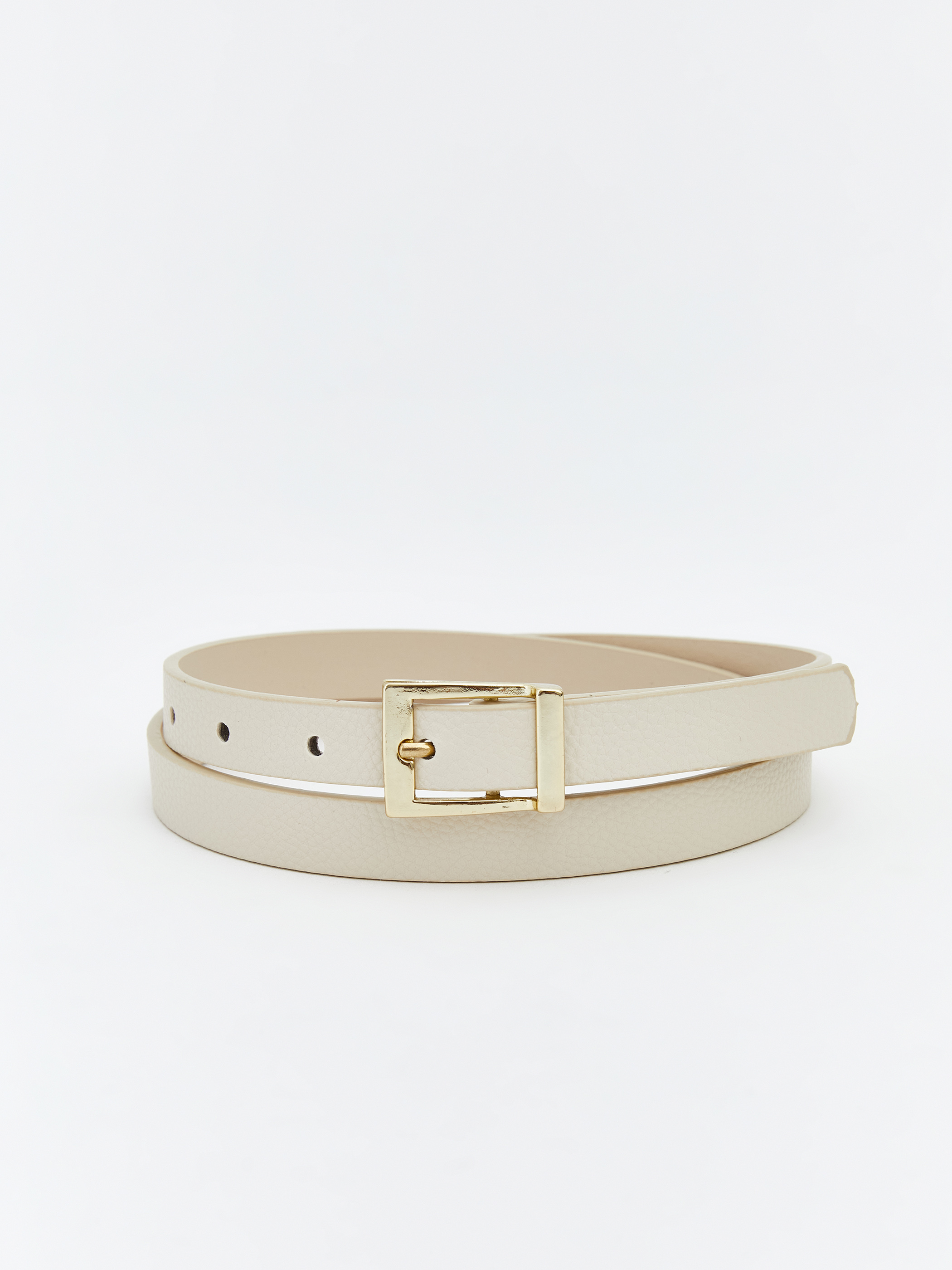 Kadın kemer deri görünümlü yüzey, metal toka detaylı. Ayarlanabilir yapısıyla farklı bedenlere uyum sağlar.