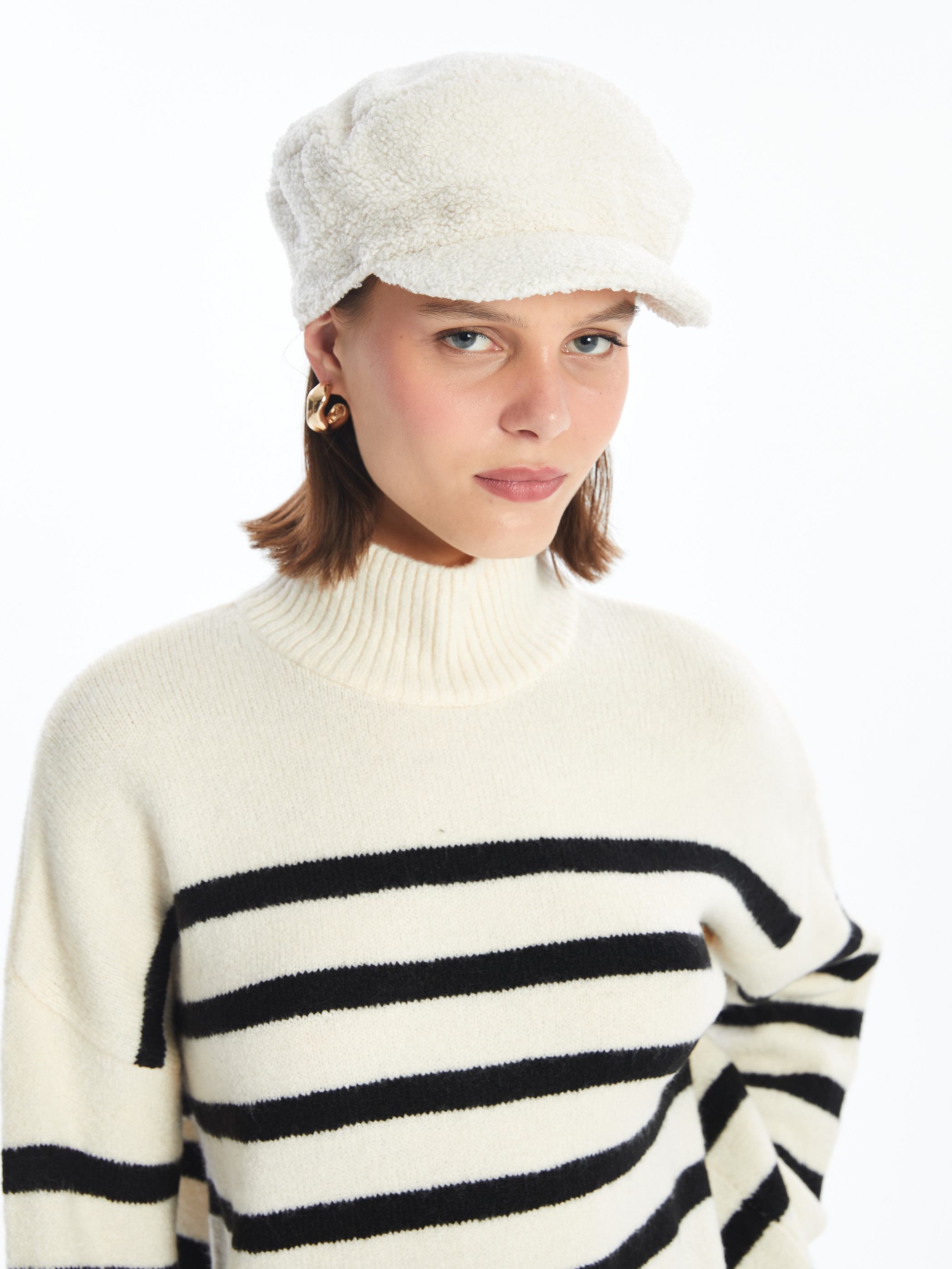 Yumuşak dokusu ve sıcak tutan yapısıyla öne çıkan bu pelüş kadın şapka, soğuk kış günlerinde hem stilinizi tamamlar hem de sizi sıcacık tutar.