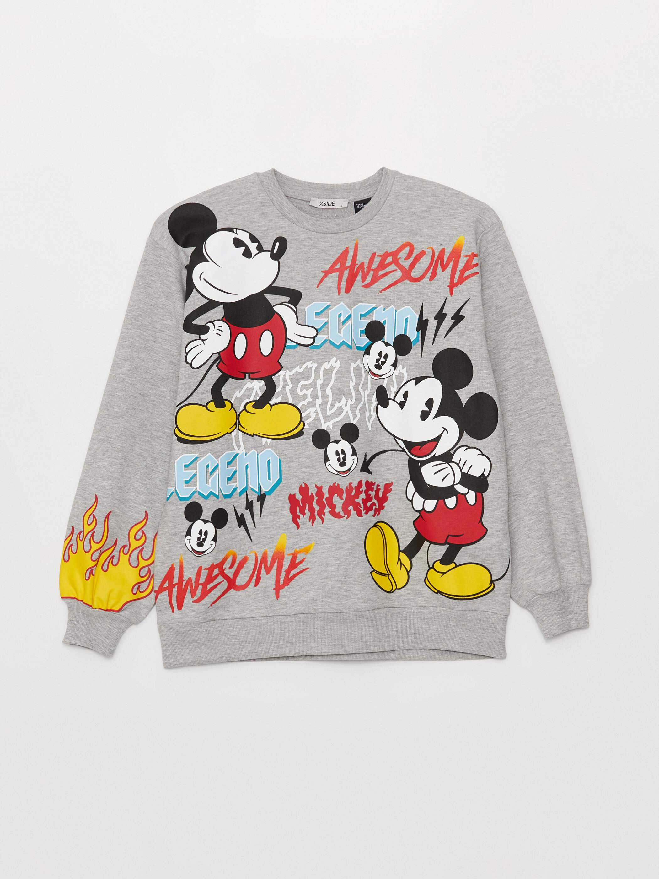 LCW CASUAL Bisiklet Yaka Mickey Mouse Baskılı Uzun Kollu Oversize Kadın Sweatshirt GRİ