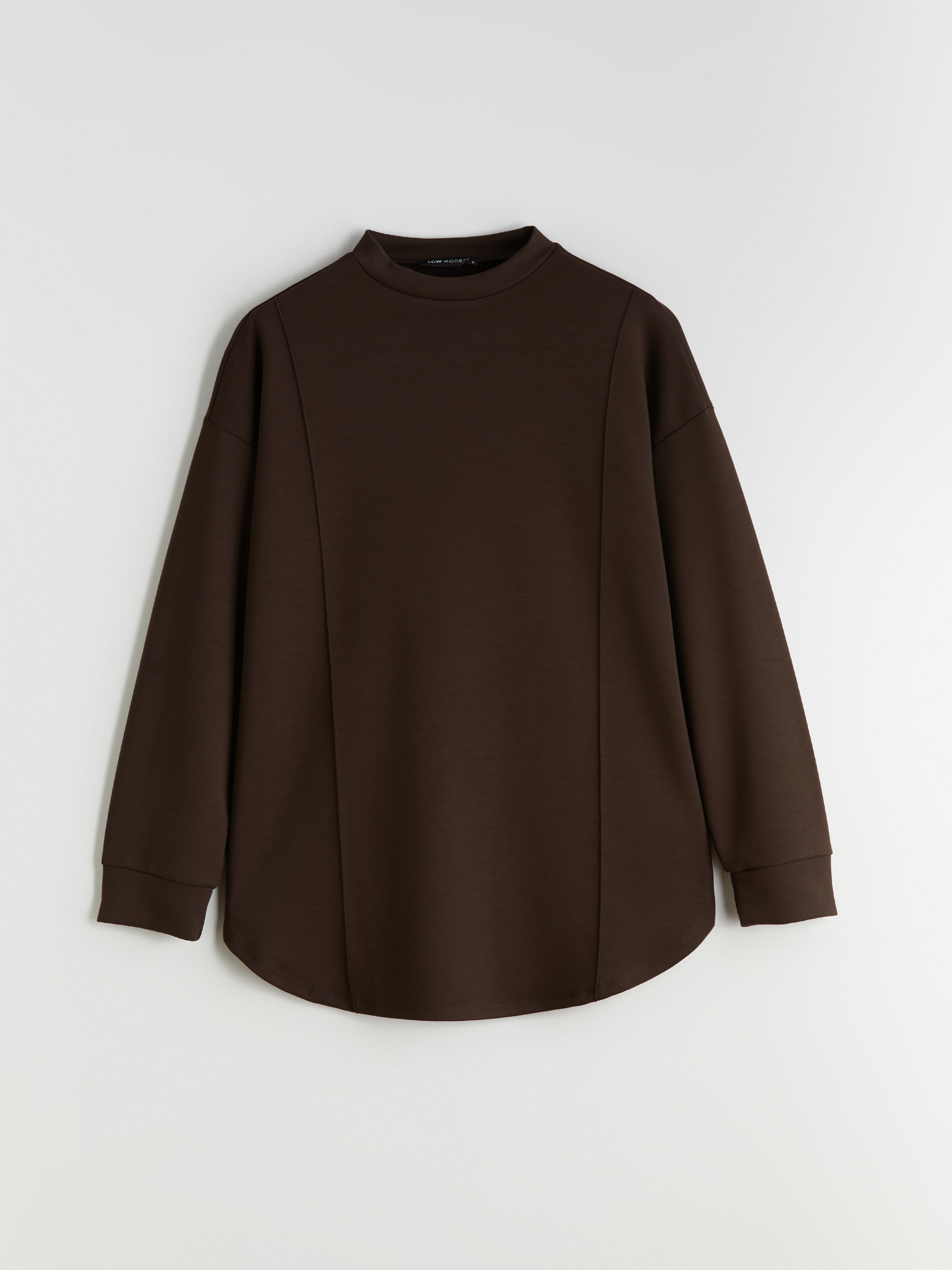 MODEST Dik Yaka Düz Uzun Kollu Kadın Sweatshirt Tunik KOYU KAHVERENGİ