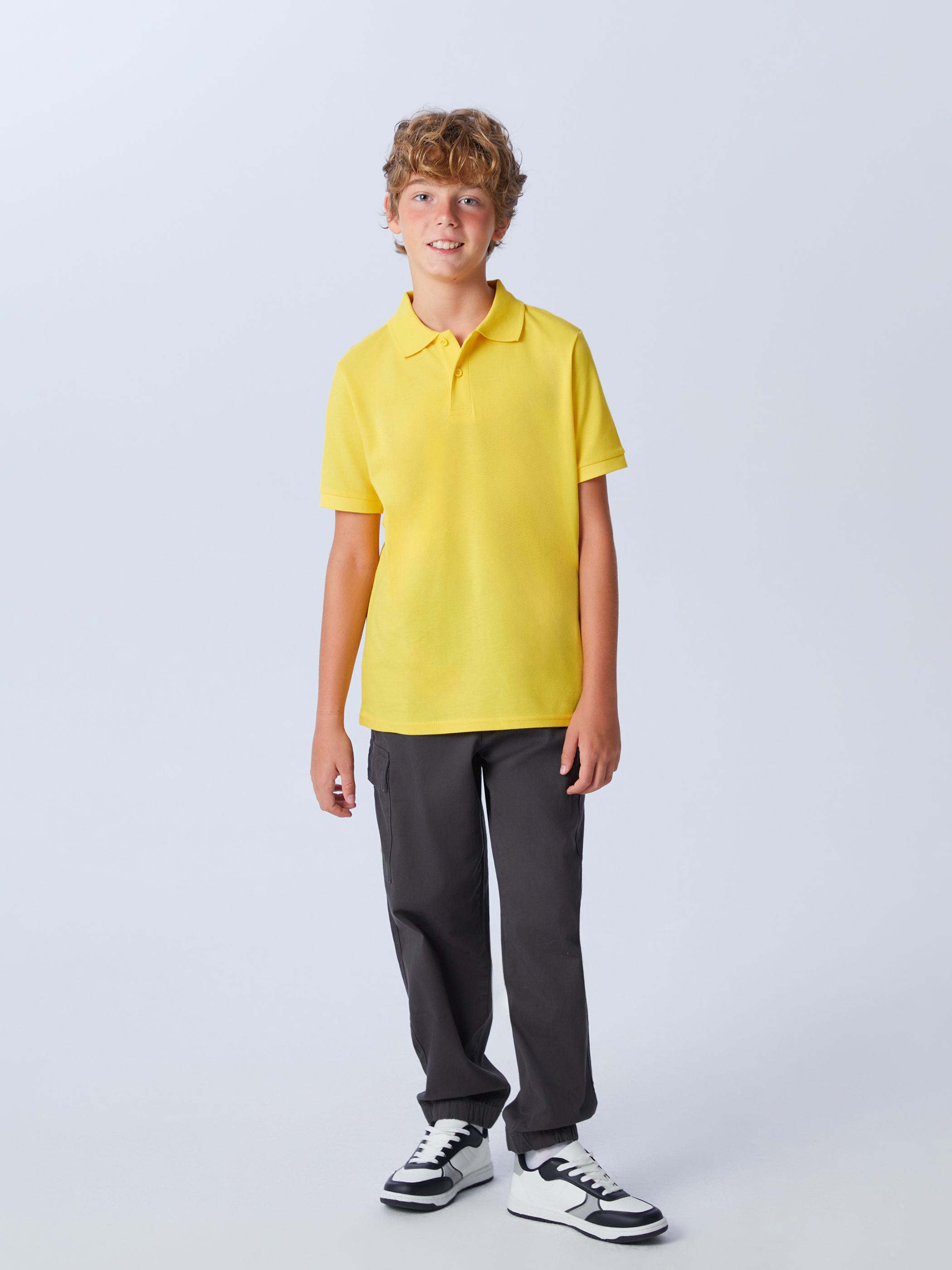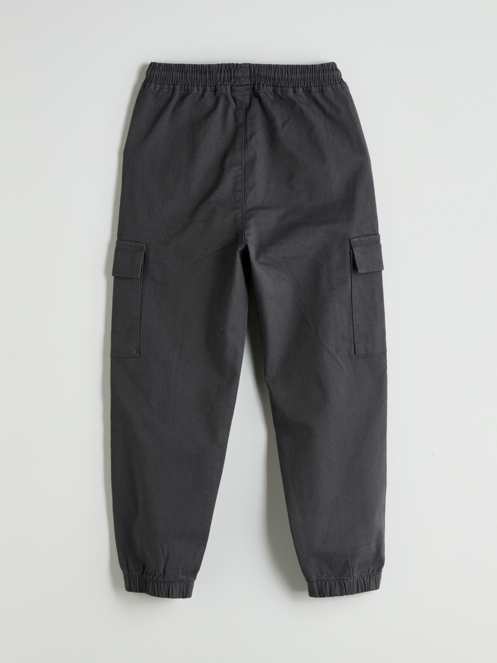 Beli lastikli pantolon, gabardin kumaştan üretilmiştir. Yan cepleri ve kapaklı kargo cepleri bulunur. Paçaları lastiklidir.