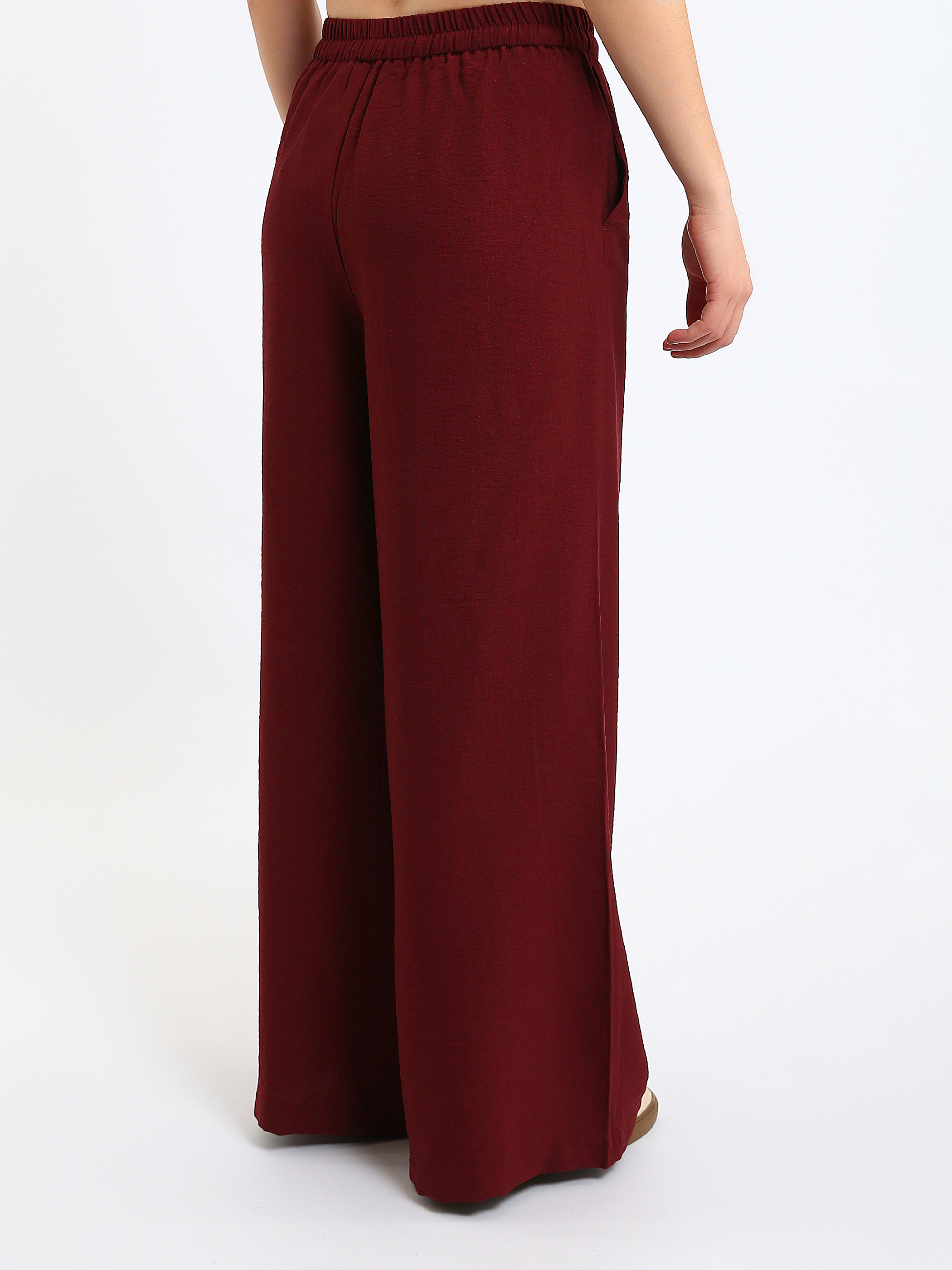 Beli lastikli kadın pantolon, viskon kumaştan üretilmiştir. İki yandan cepli ve beli bağcıklı tasarıma sahiptir.
