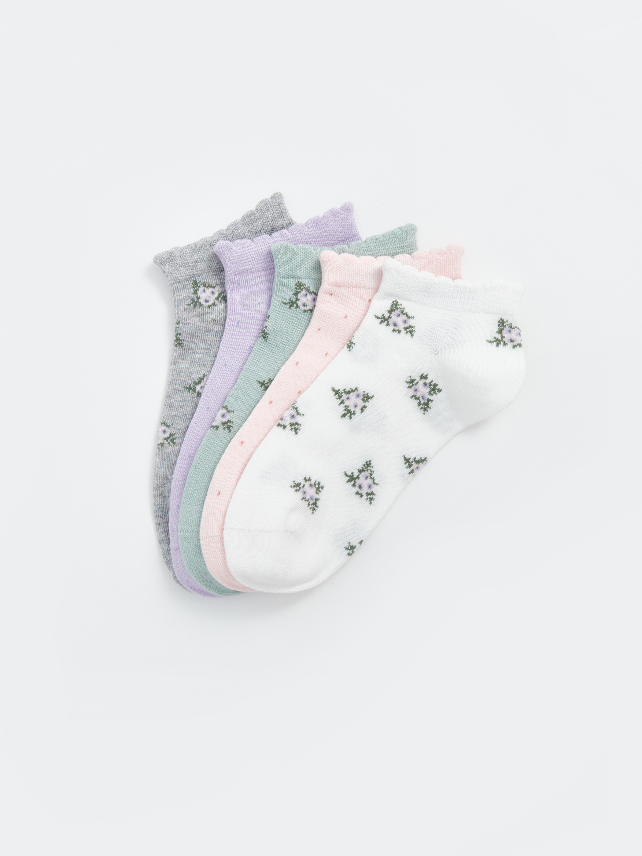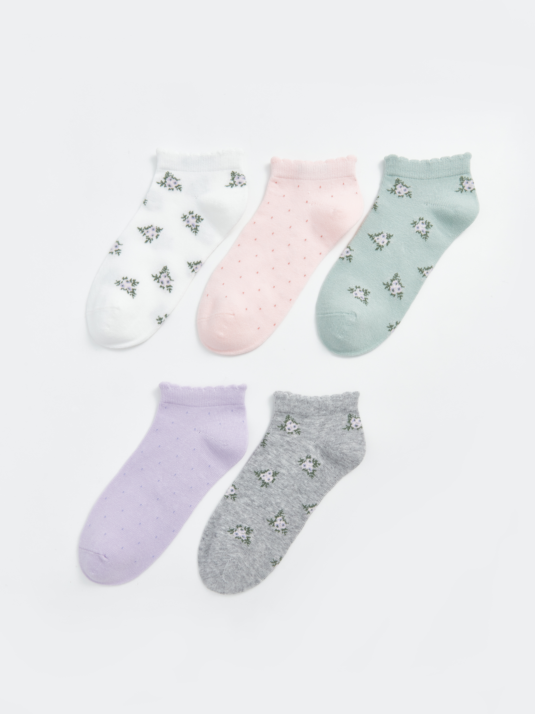 Pamuk karışımlı elyaftan üretilen patik çoraplar, yumuşak ve konforlu bir dokuya sahiptir. Desenli tasarımıyla eğlenceli bir görünüm sunar ve 5 çift patik çoraptan oluşmaktadır.