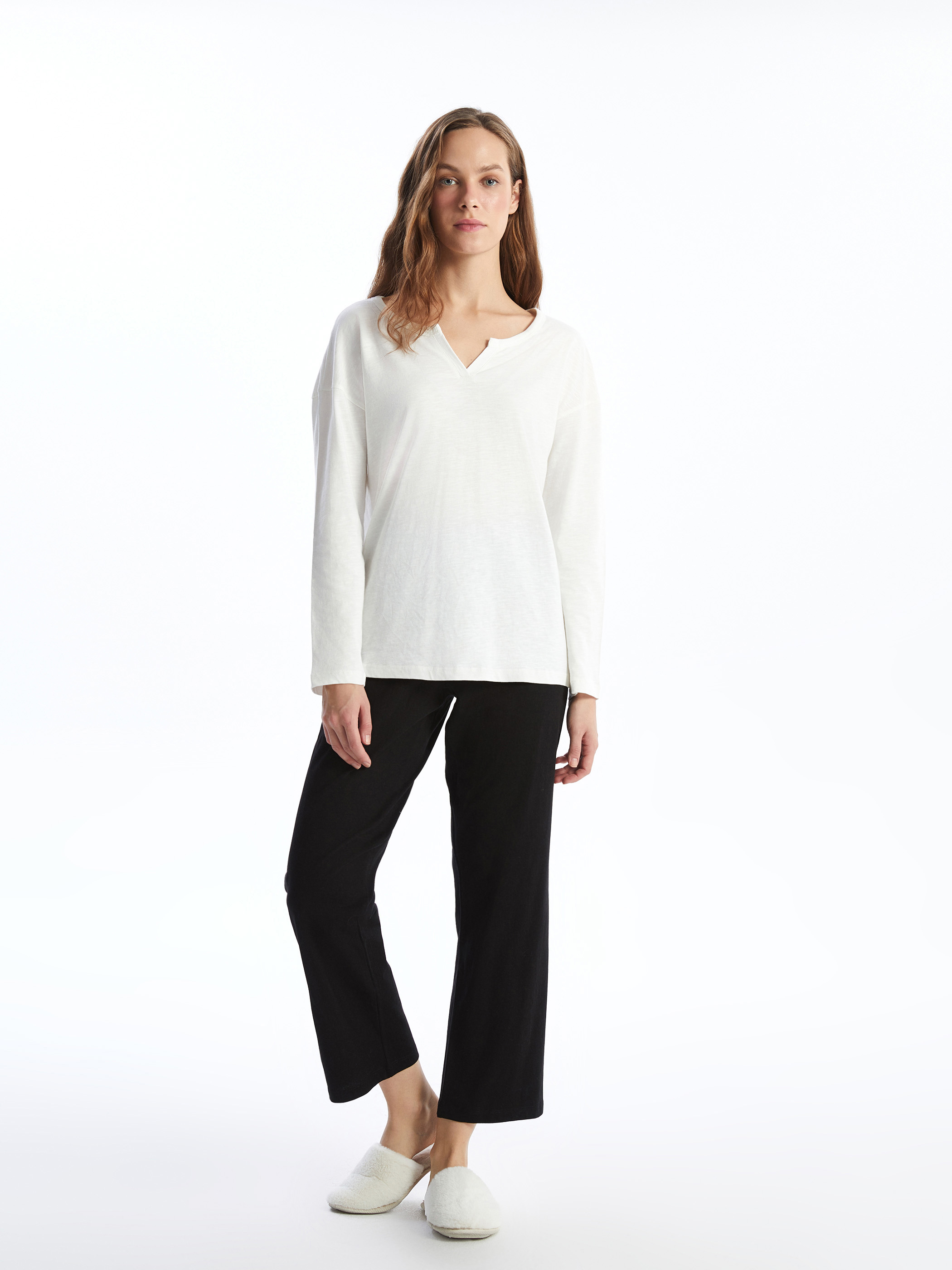 Beli lastikli düz pijama altı, hafif ve nefes alabilen kumaştan üretilmiştir. Lastik detayı sayesinde belinizi saran pijama altı konforlu bir uyku çekmeniz için tasarlanmıştır.