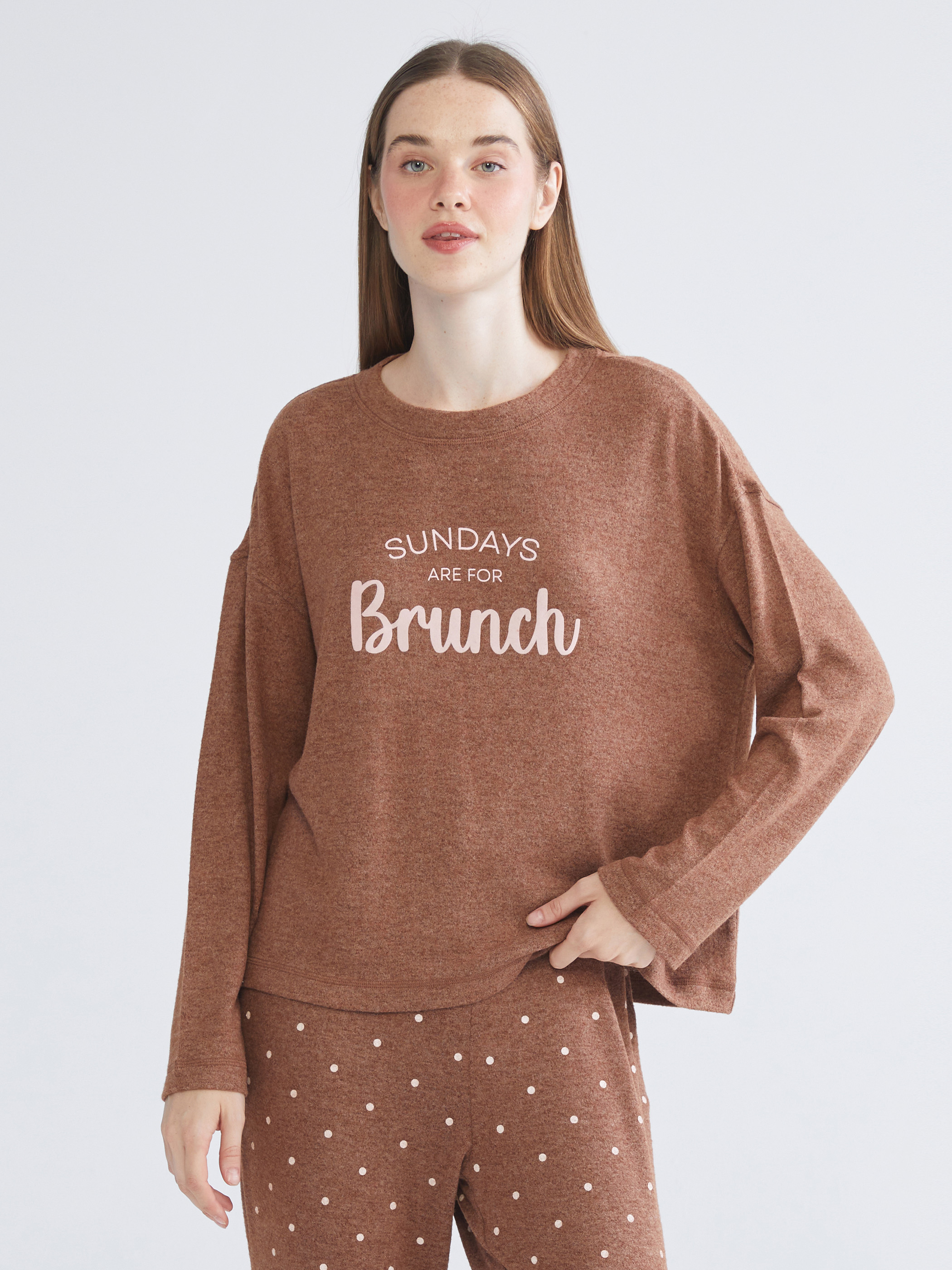 Pijama Takım KAHVERENGİ BASKILI