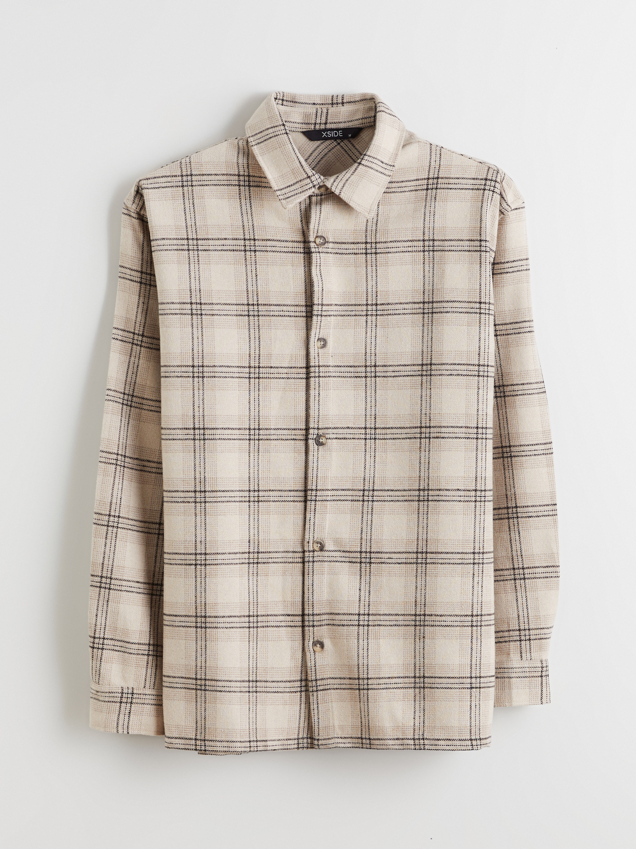 Rahat Kalıp Uzun Kollu Ekose Erkek Oduncu Gömlek BEJ EKOSELİ