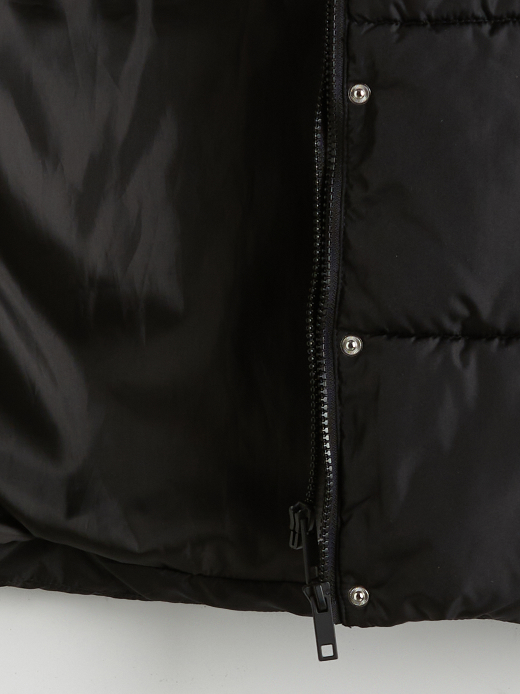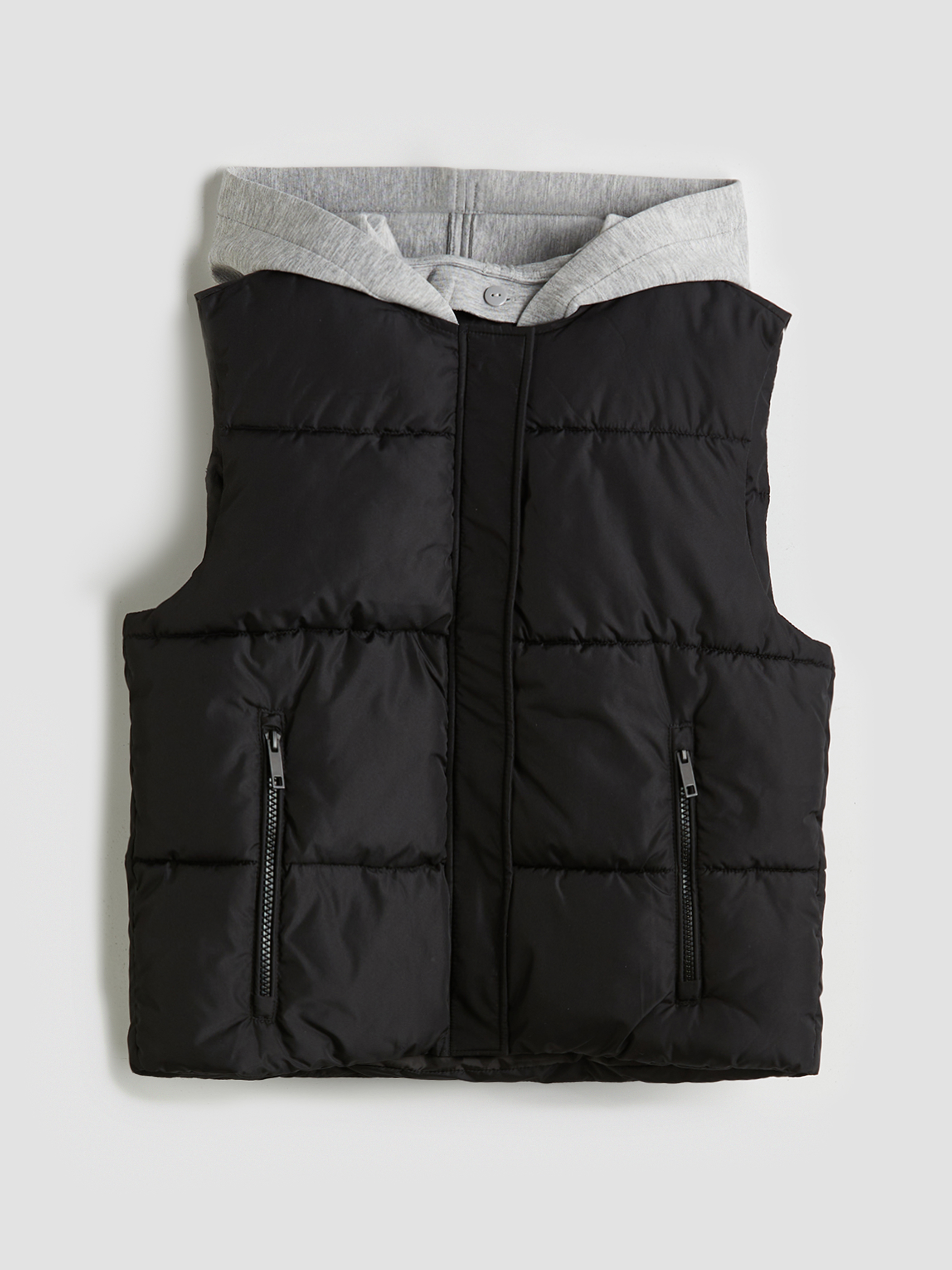 Kapüşonlu kadın şişme yelek, fermuar ve çıtçıt kapamalı olup, iki yandan cepli tasarıma sahiptir.