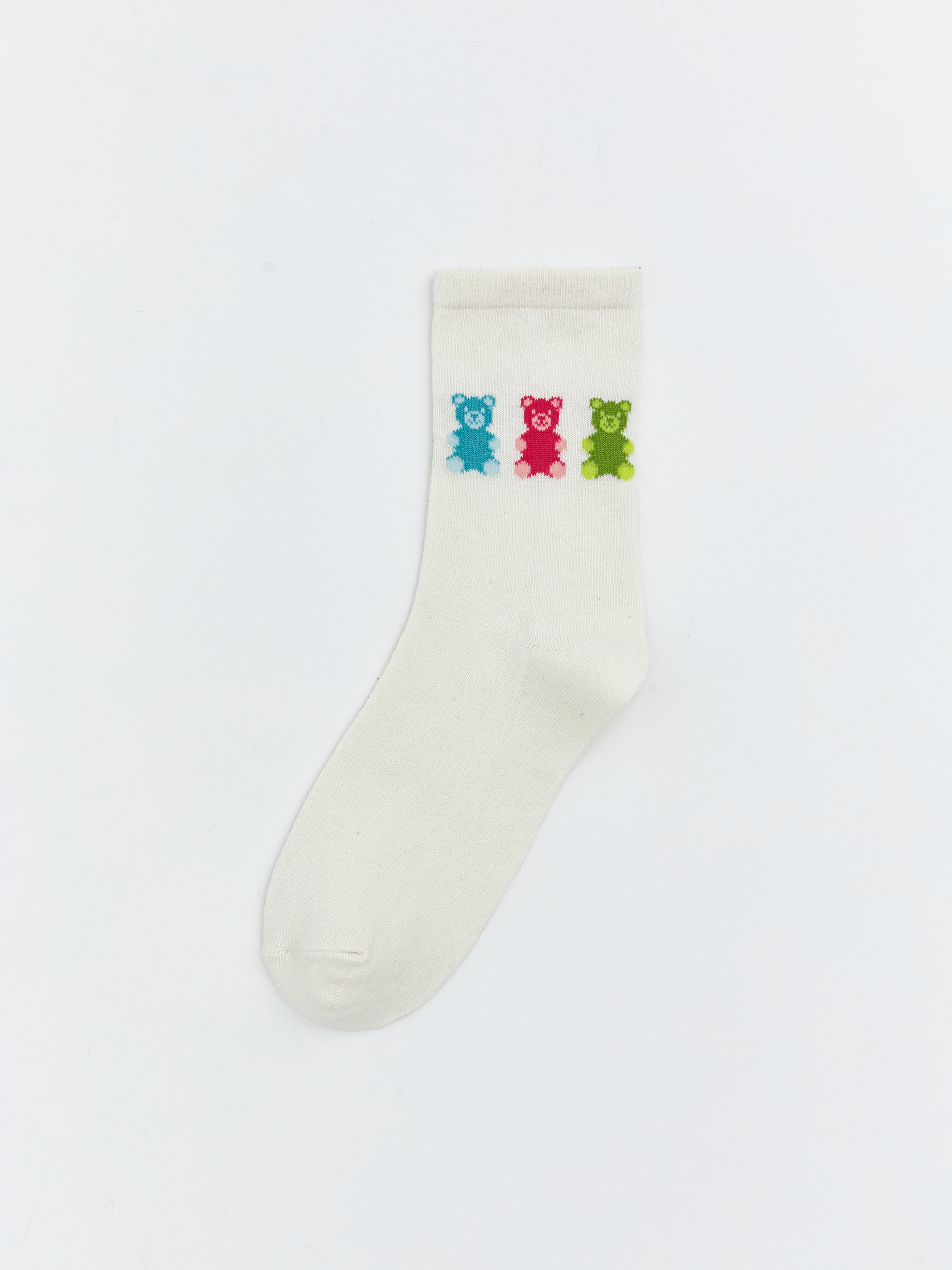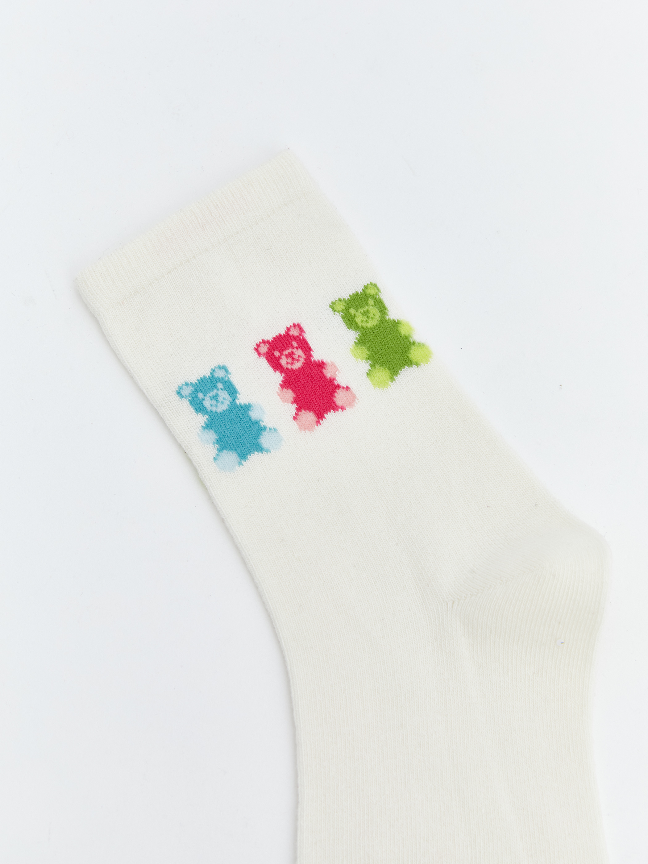Ayı baskılı kadın soket çorap, pamuk karışımlı kumaştan üretilmiştir.