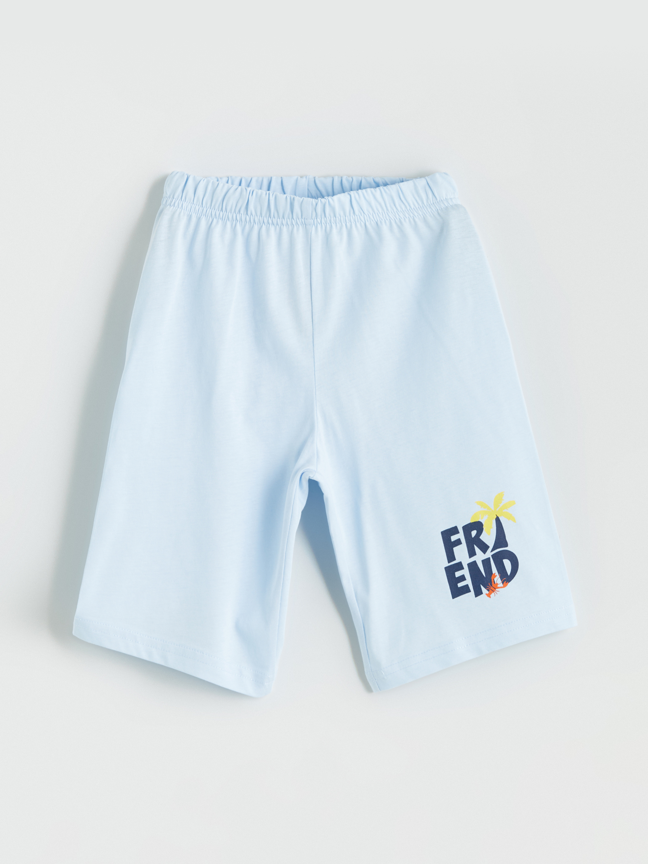 Baskılı tasarıma sahip şortlardan oluşan 2’li settir. Pamuklu penye kumaştan üretilmiştir.