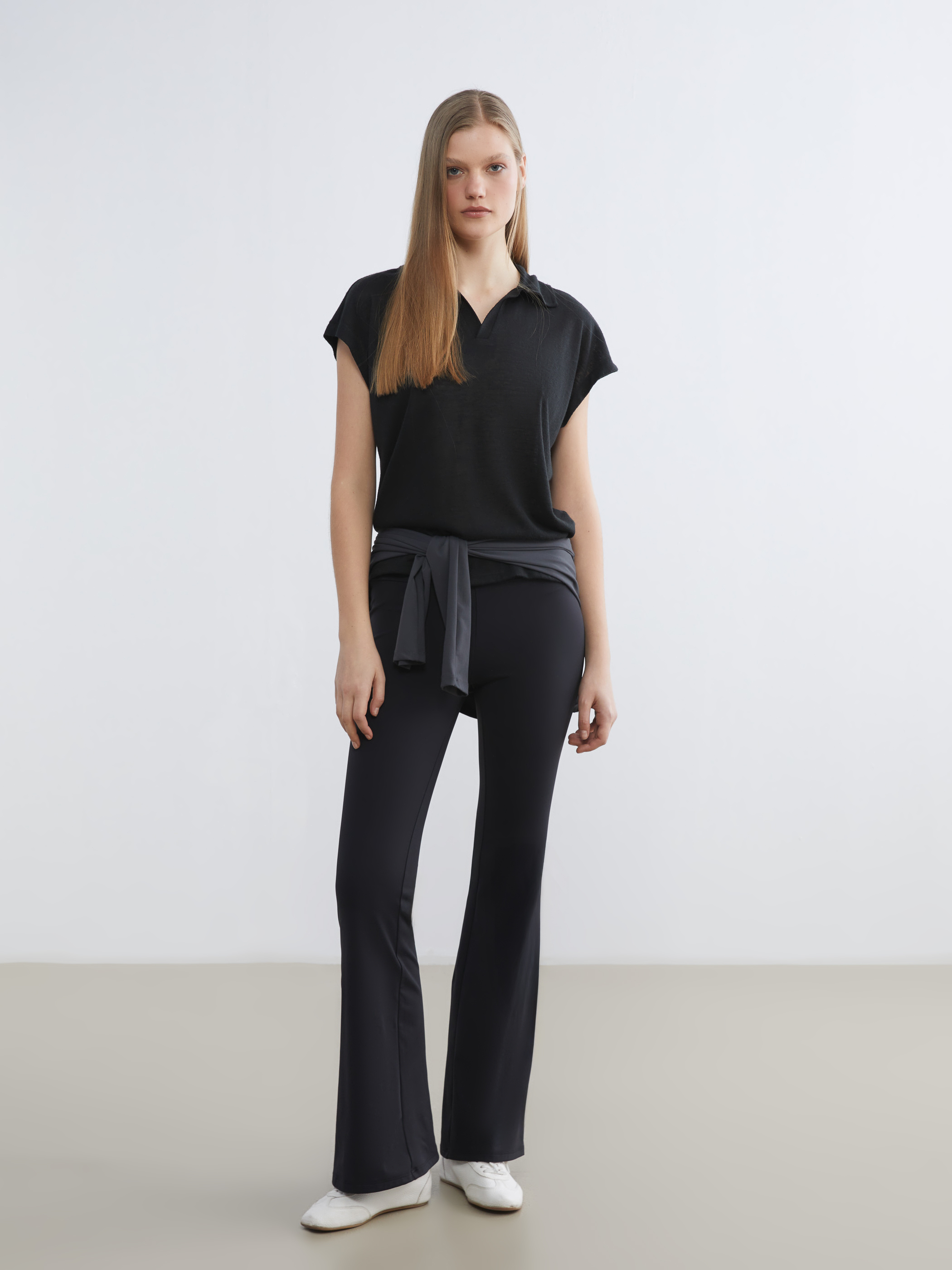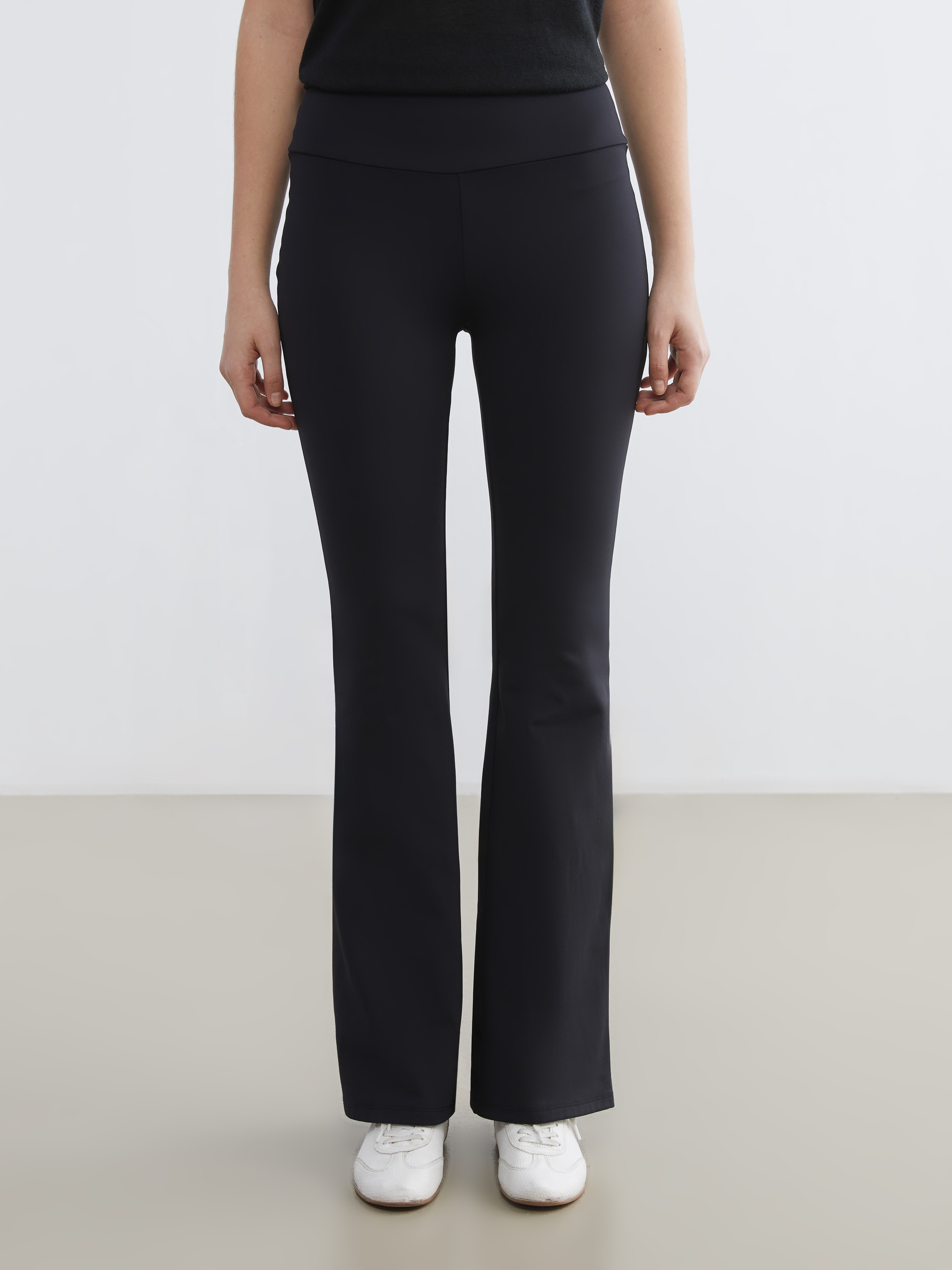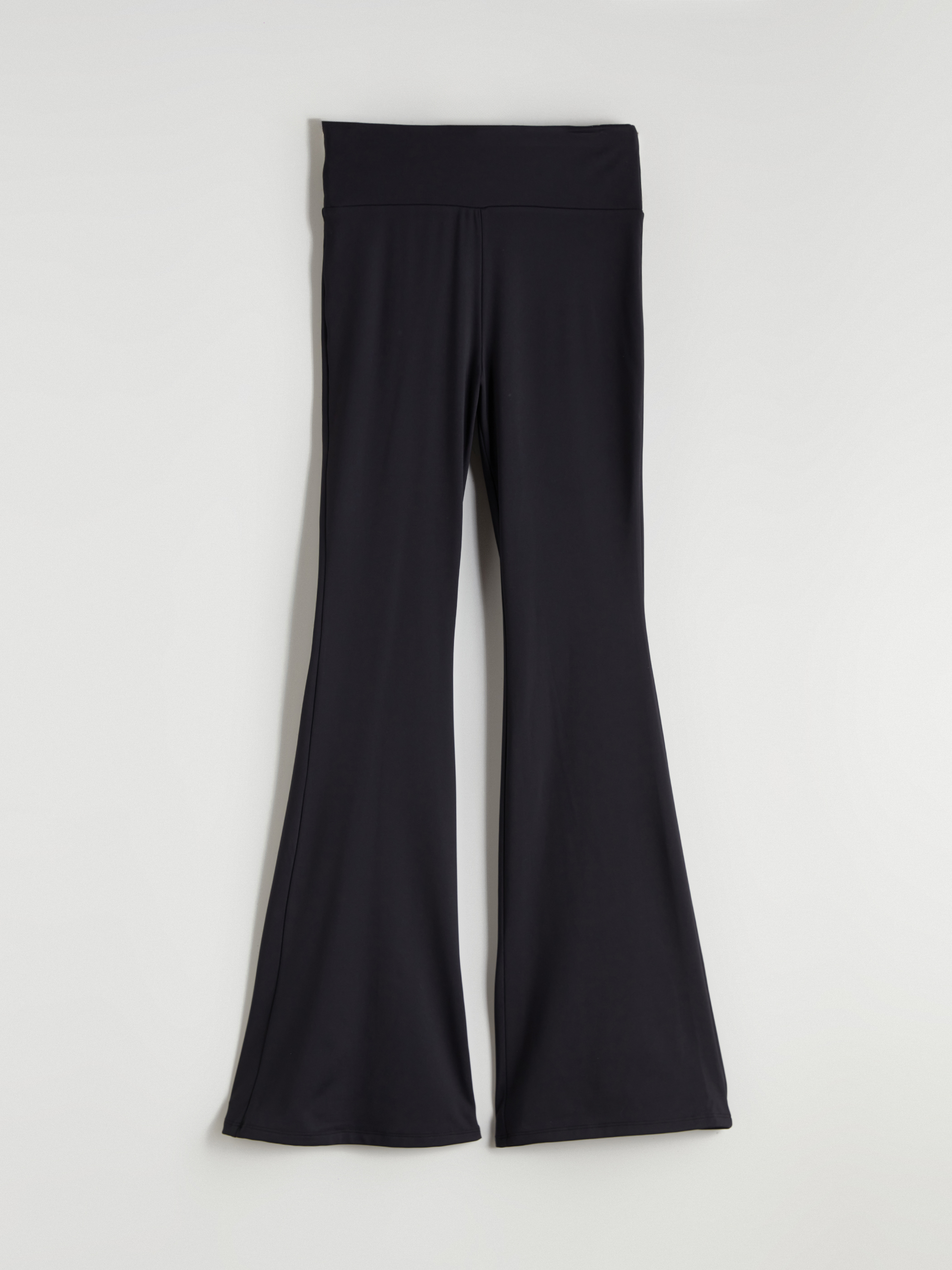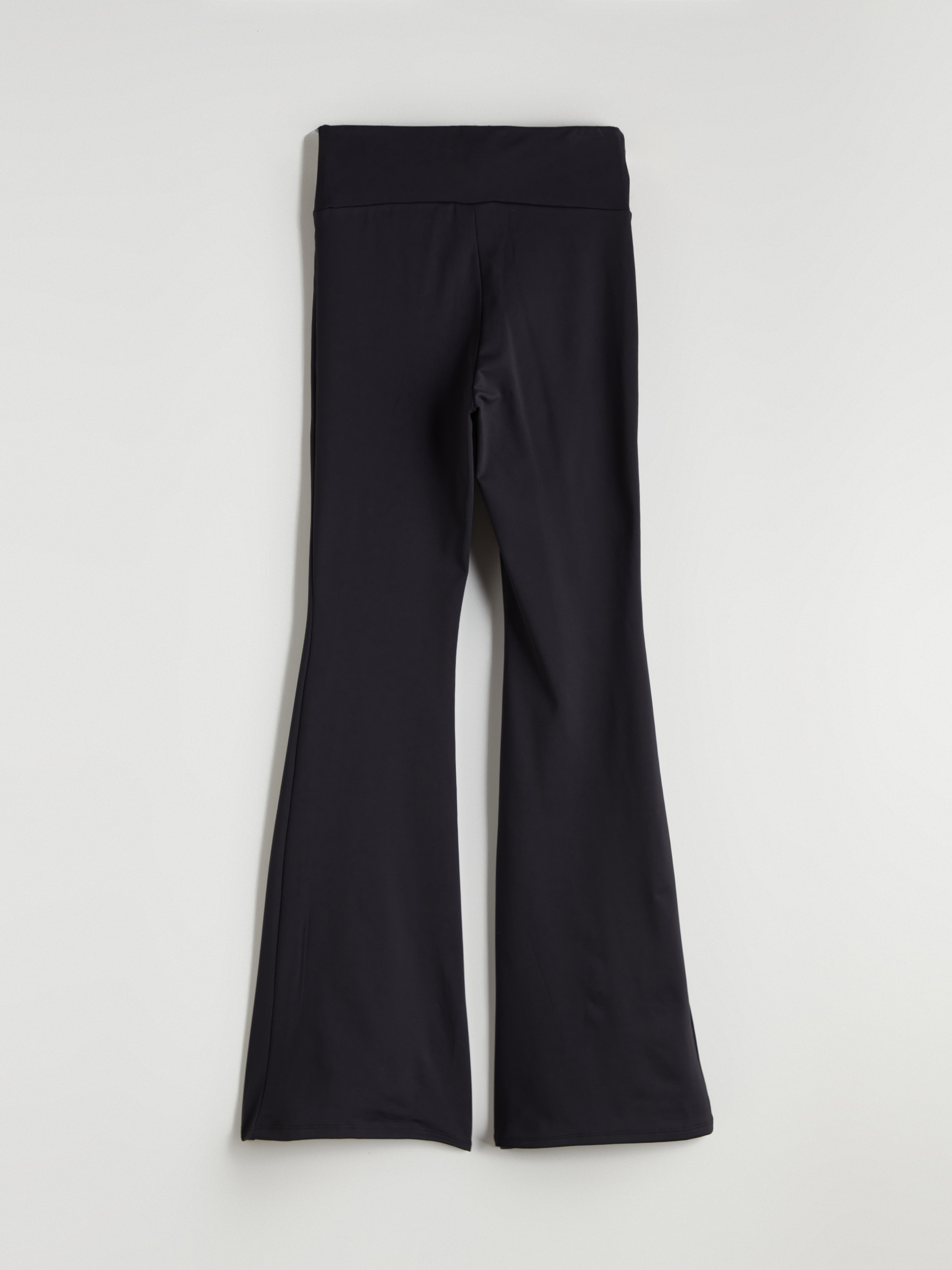 İspanyol paça kadın tayt pantolon, interlok kumaştan üretilmiştir. Yüksek bel tasarıma sahiptir.