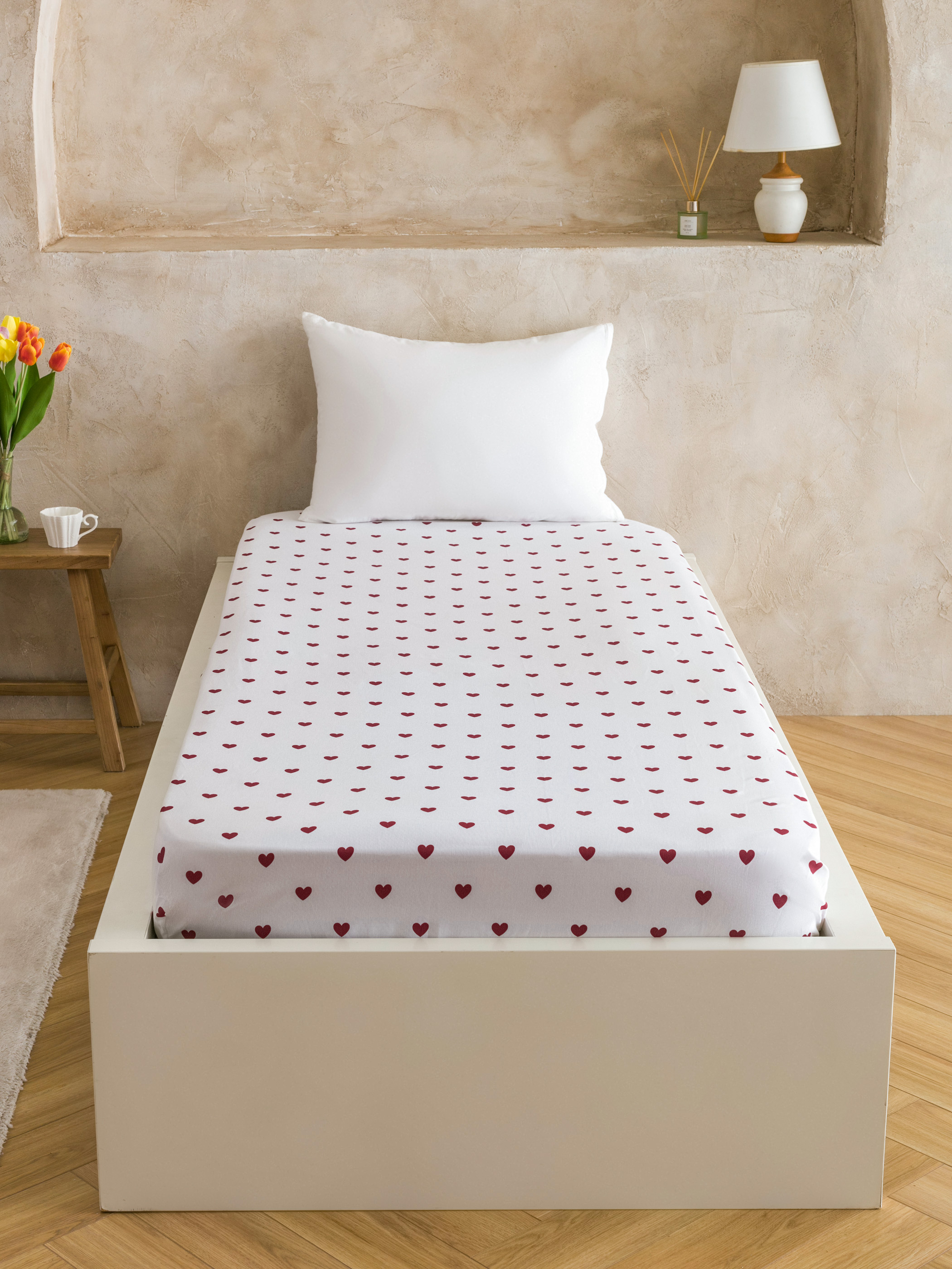 Tek Kişilik Çarşaf KIRMIZI BASKILI